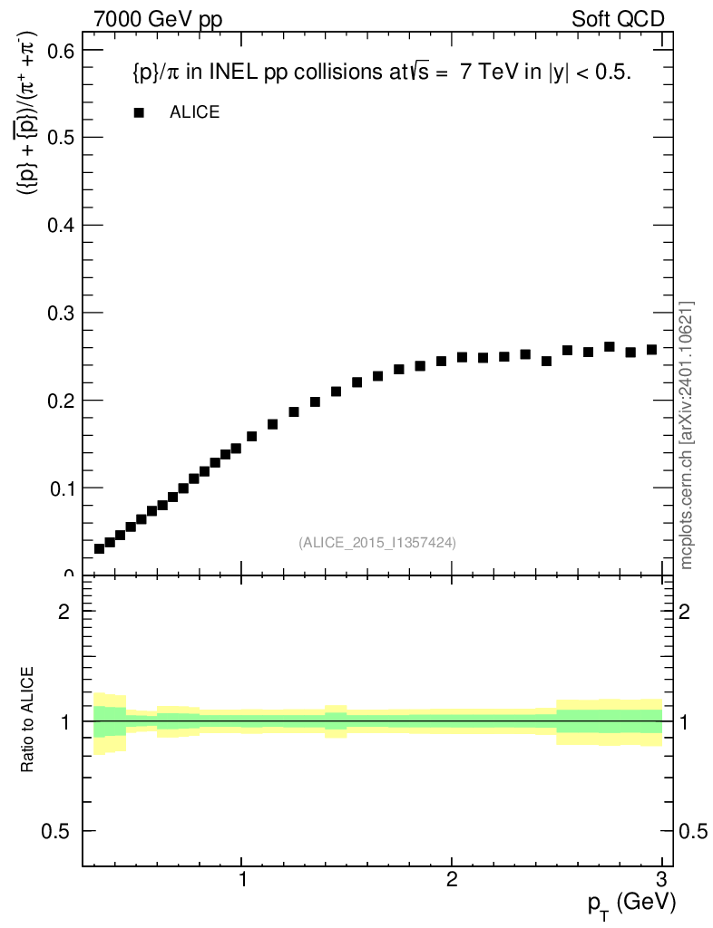 Soft QCD (inelastic) : Identified Particles : Ratios : (pbar+p)/(π-+π+) vs pT