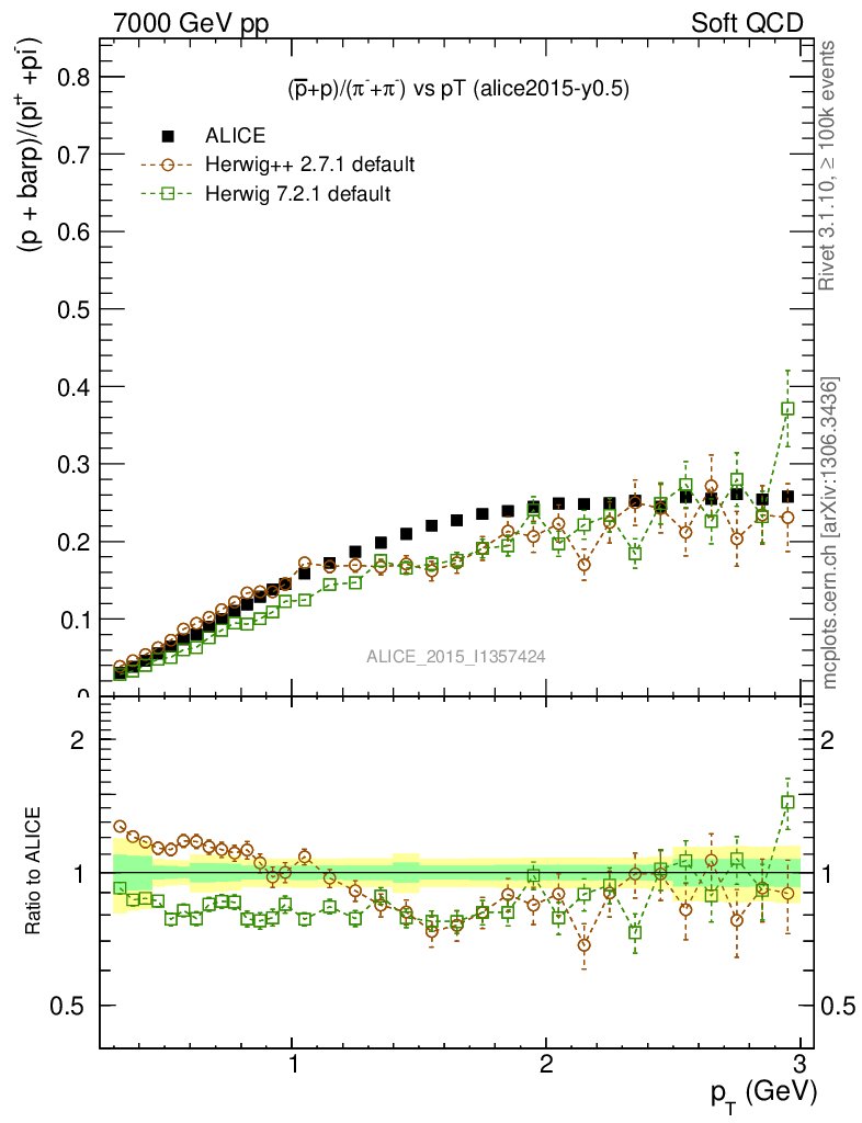 Soft QCD (inelastic) : Identified Particles : Ratios : (pbar+p)/(π-+π+) vs pT