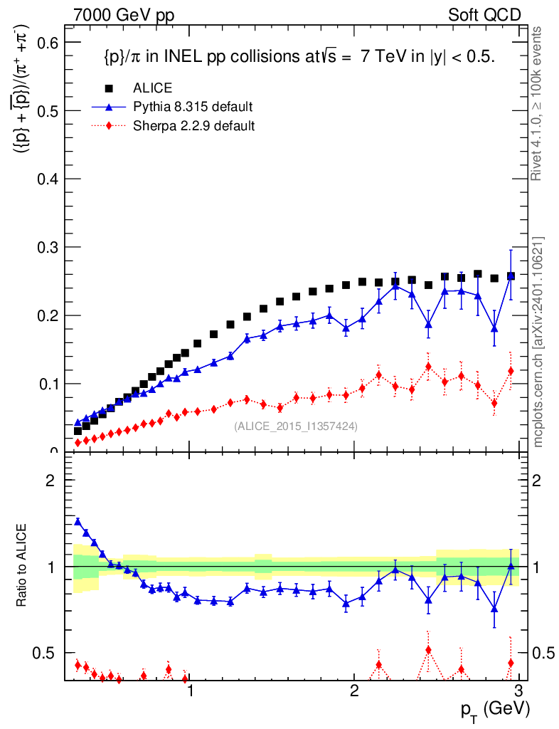 Soft QCD (inelastic) : Identified Particles : Ratios : (pbar+p)/(π-+π+) vs pT