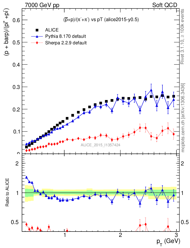 Soft QCD (inelastic) : Identified Particles : Ratios : (pbar+p)/(π-+π+) vs pT