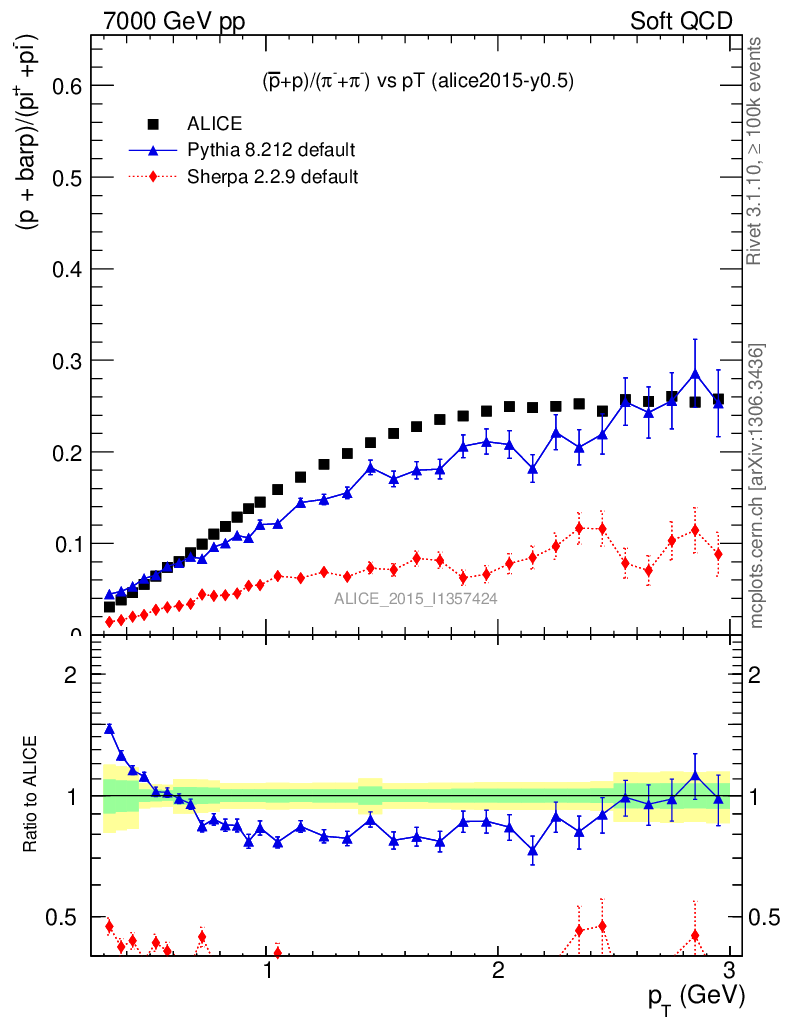 Soft QCD (inelastic) : Identified Particles : Ratios : (pbar+p)/(π-+π+) vs pT