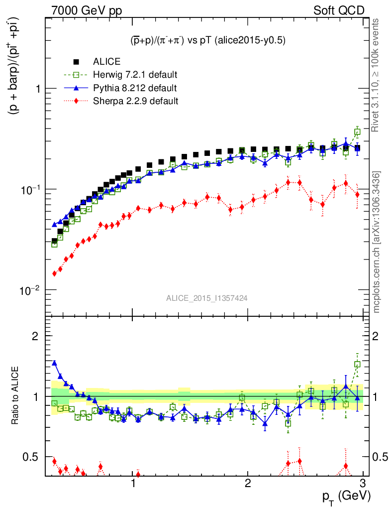 Soft QCD (inelastic) : Identified Particles : Ratios : (pbar+p)/(π-+π+) vs pT
