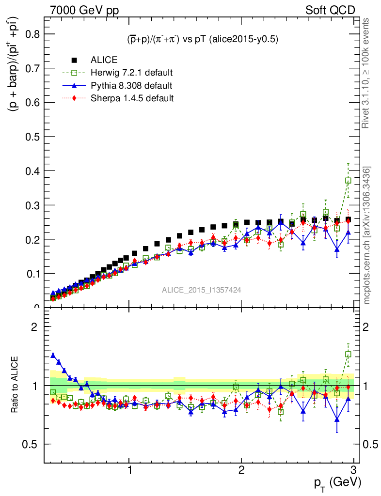 Soft QCD (inelastic) : Identified Particles : Ratios : (pbar+p)/(π-+π+) vs pT
