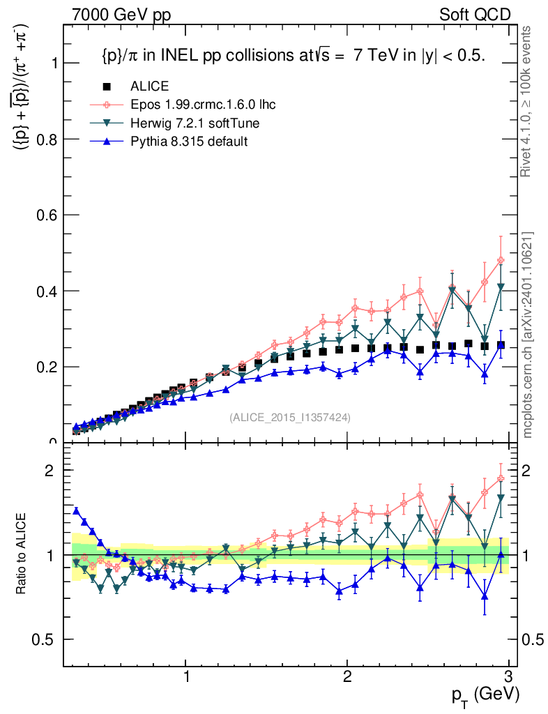 Soft QCD (inelastic) : Identified Particles : Ratios : (pbar+p)/(π-+π+) vs pT