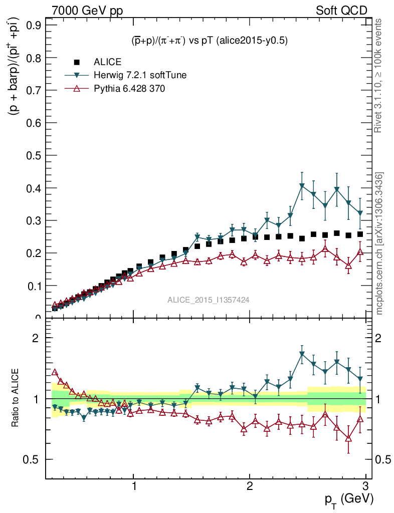 Soft QCD (inelastic) : Identified Particles : Ratios : (pbar+p)/(π-+π+) vs pT