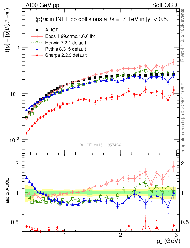 Soft QCD (inelastic) : Identified Particles : Ratios : (pbar+p)/(π-+π+) vs pT