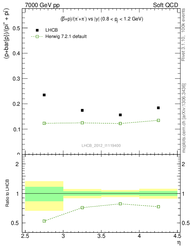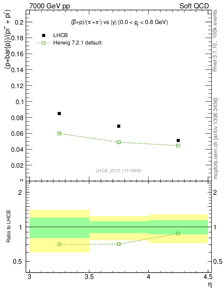 Soft QCD (inelastic) : Identified Particles : Ratios : (pbar+p)/(π-+π+) vs |y|