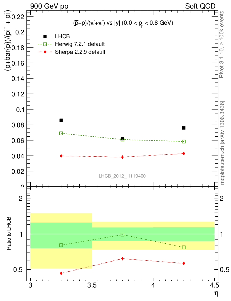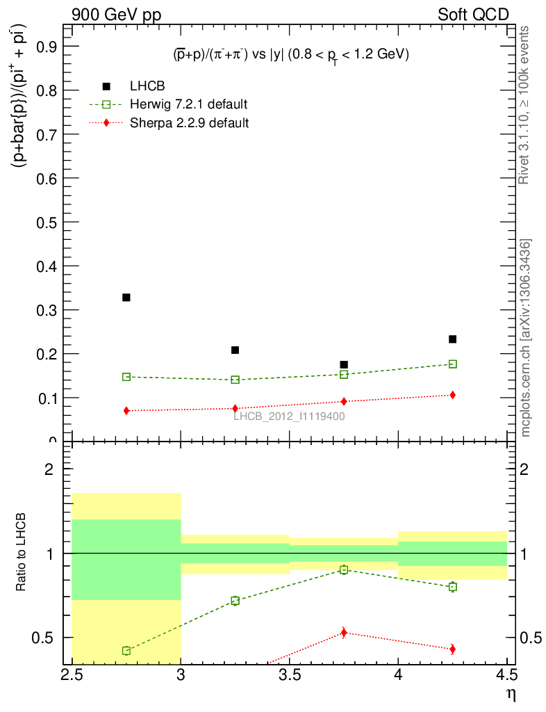 Soft QCD (inelastic) : Identified Particles : Ratios : (pbar+p)/(π-+π+) vs |y|