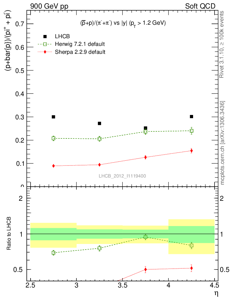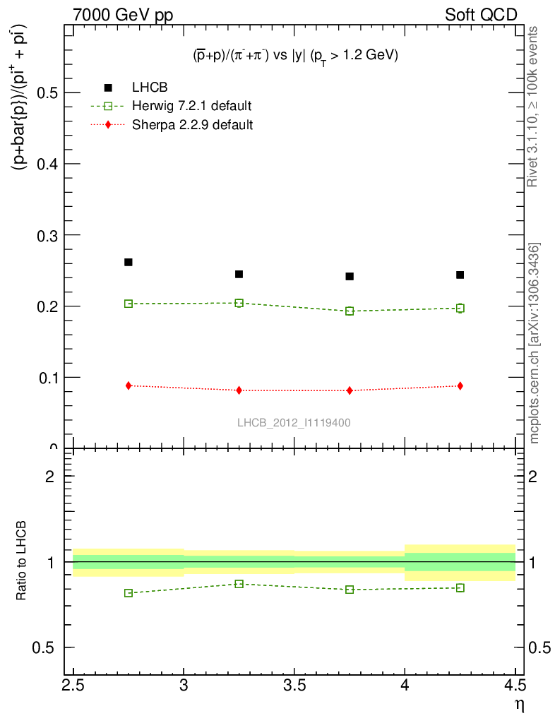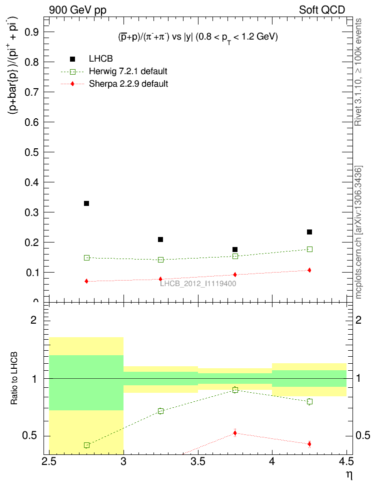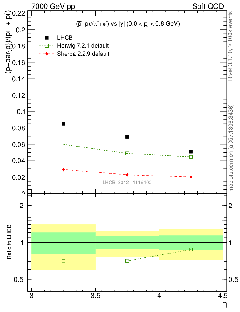 Soft QCD (inelastic) : Identified Particles : Ratios : (pbar+p)/(π-+π+) vs |y|