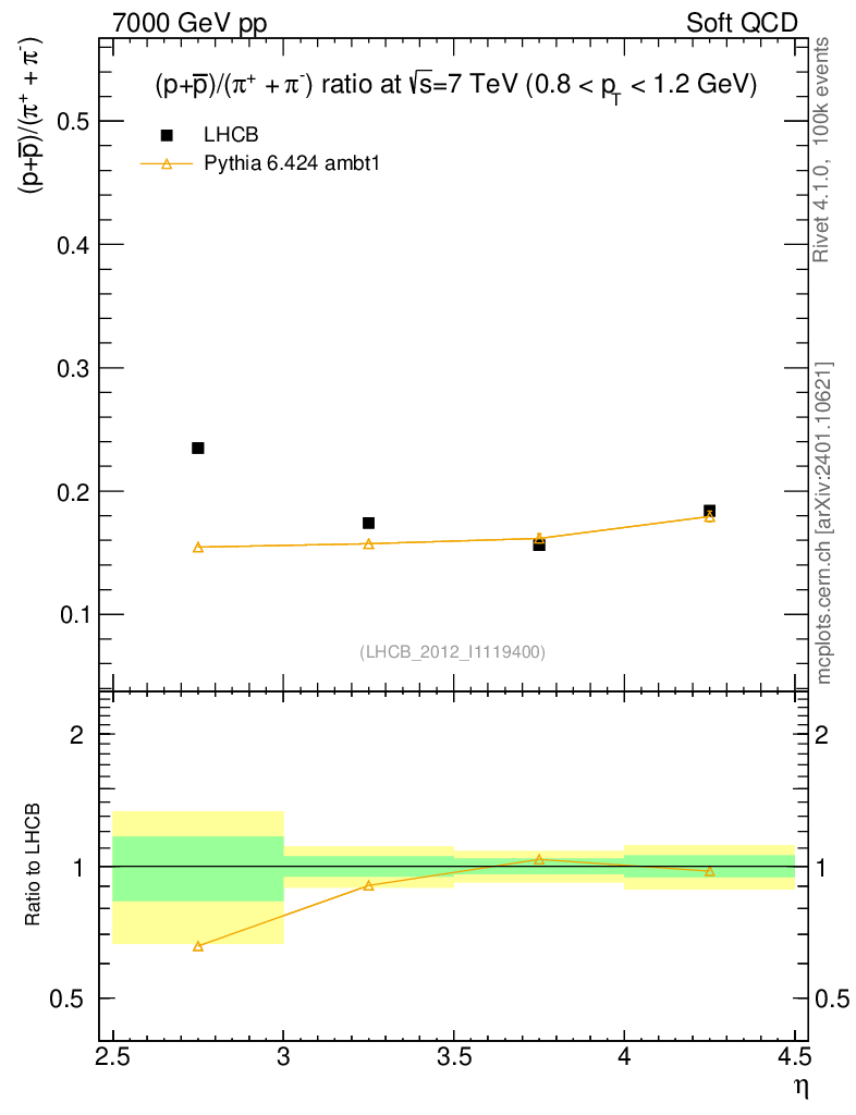 Soft QCD (inelastic) : Identified Particles : Ratios : (pbar+p)/(π-+π+) vs |y|