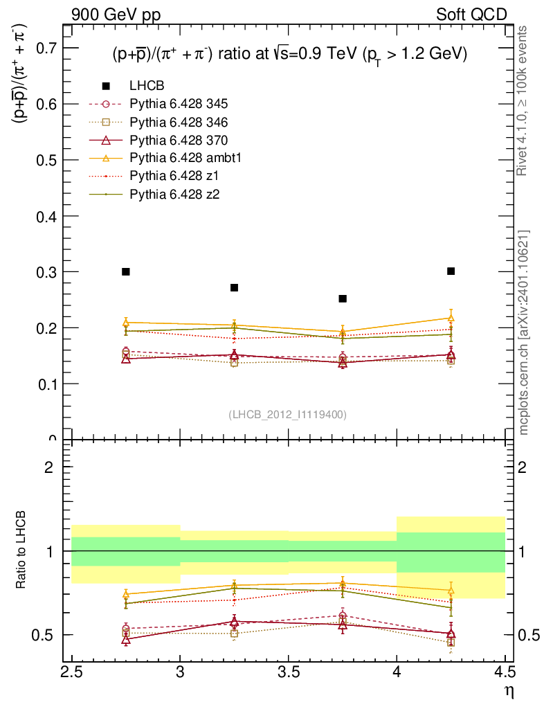 Soft QCD (inelastic) : Identified Particles : Ratios : (pbar+p)/(π-+π+) vs |y|