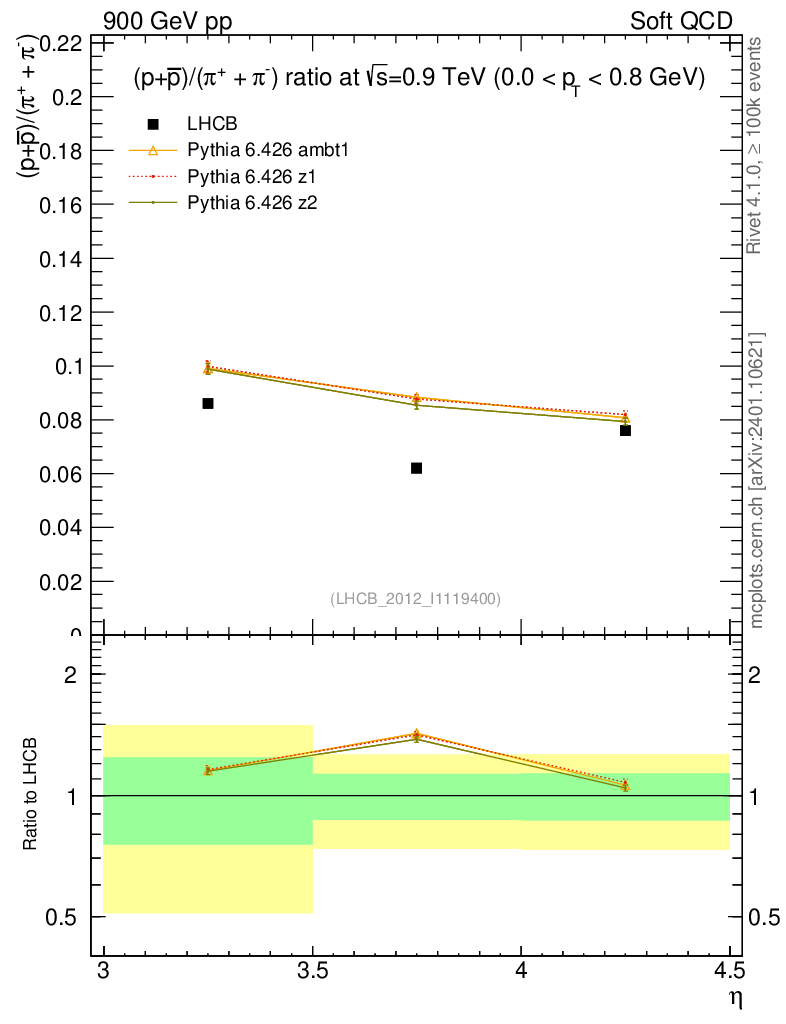 Soft QCD (inelastic) : Identified Particles : Ratios : (pbar+p)/(π-+π+) vs |y|