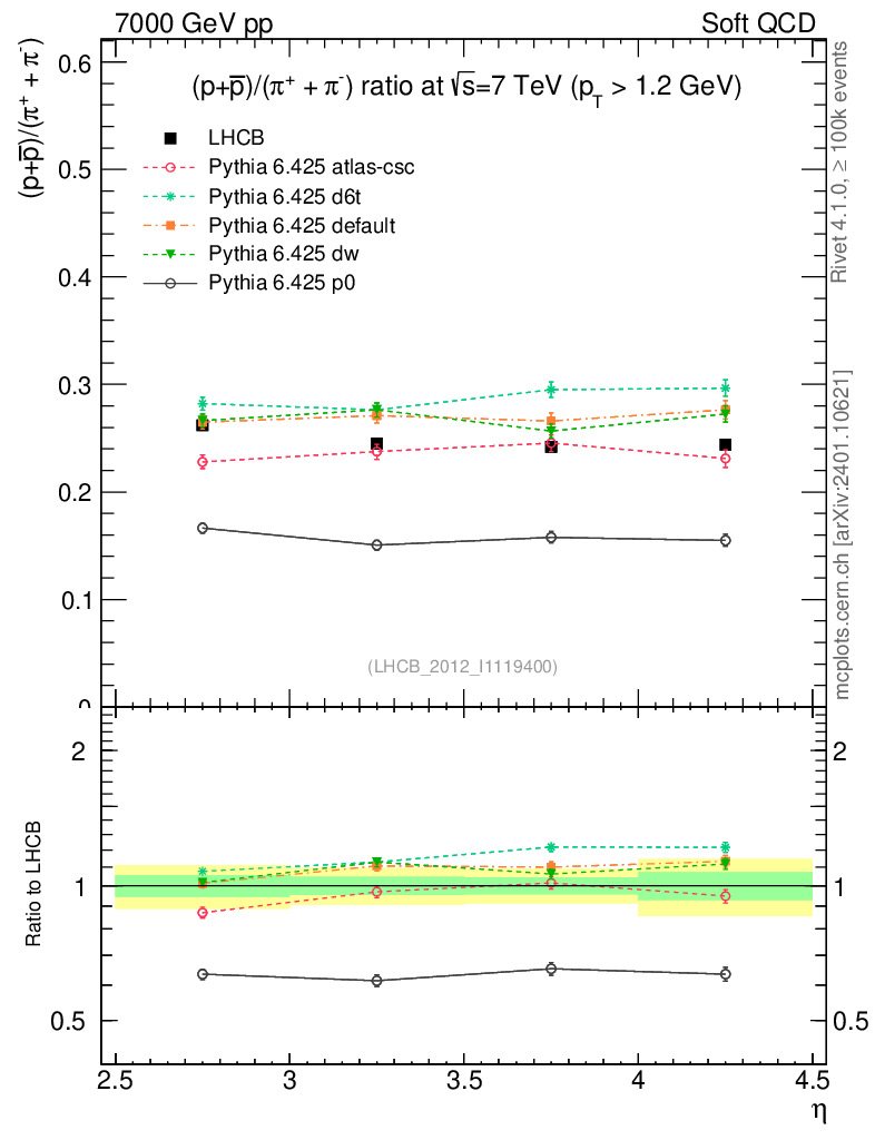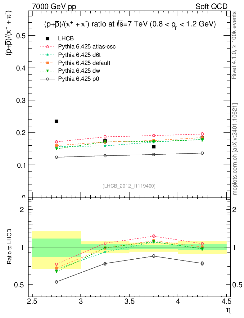 Soft QCD (inelastic) : Identified Particles : Ratios : (pbar+p)/(π-+π+) vs |y|
