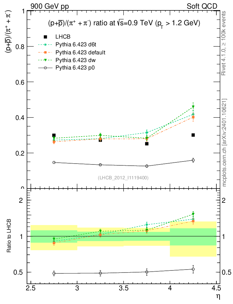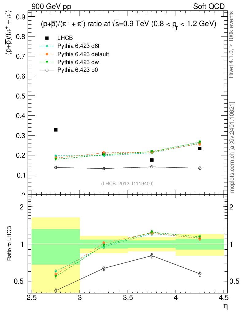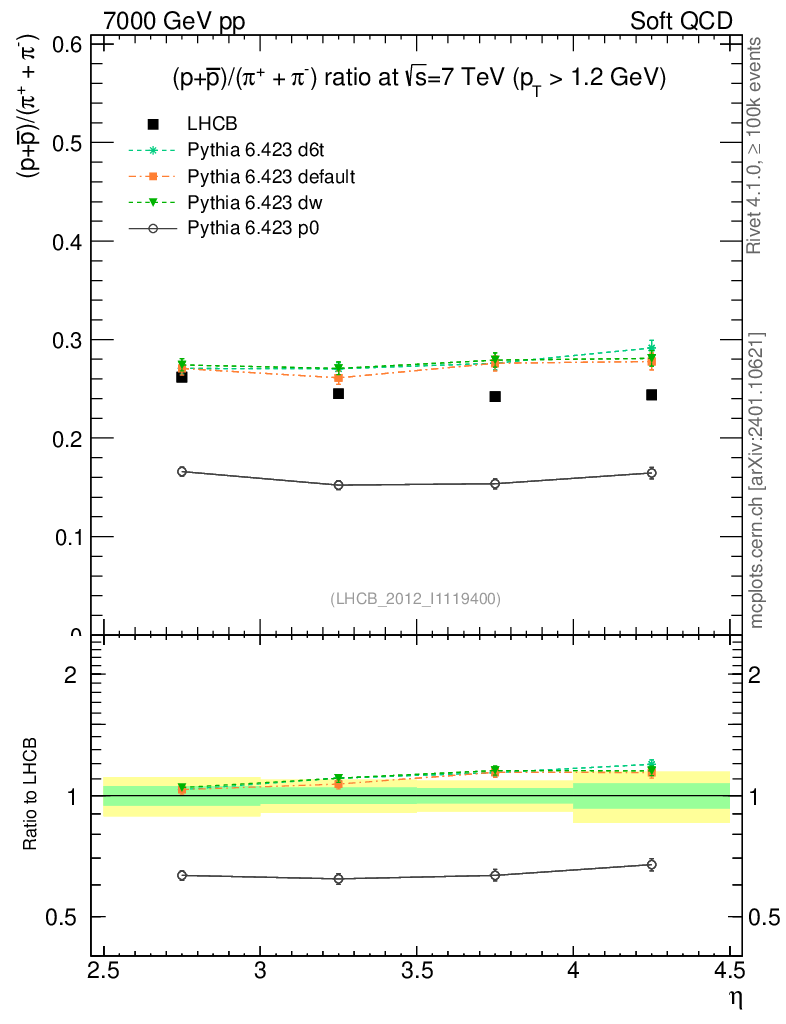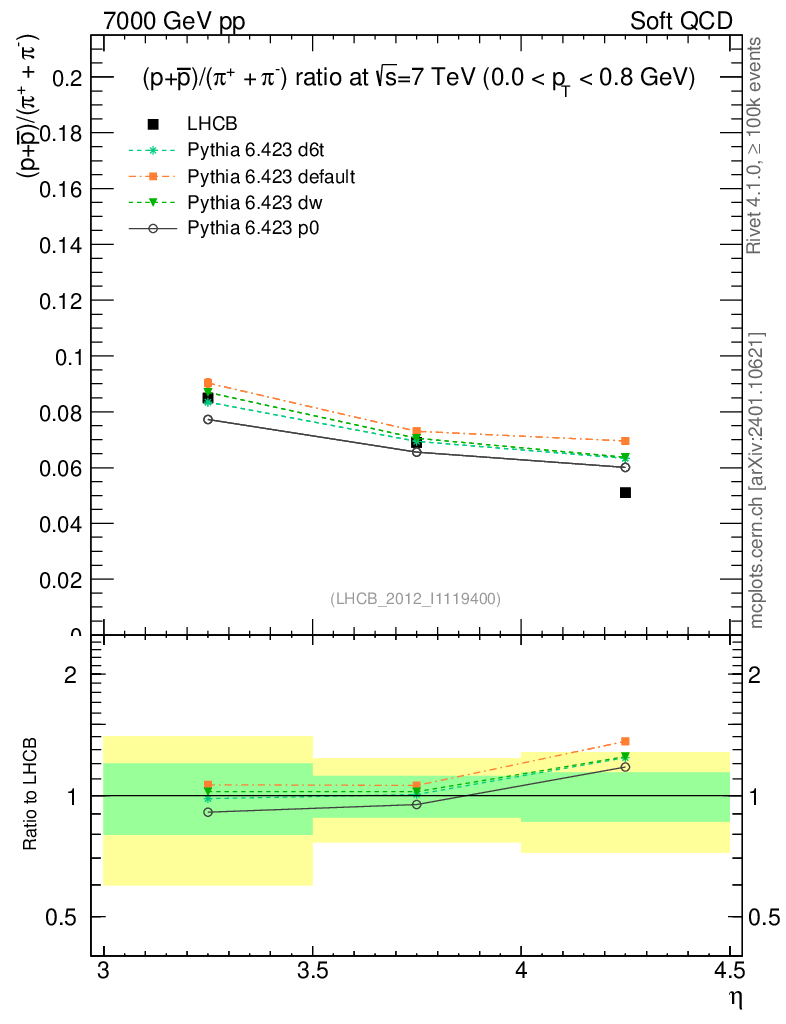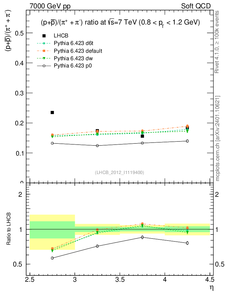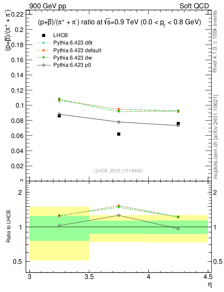 Soft QCD (inelastic) : Identified Particles : Ratios : (pbar+p)/(π-+π+) vs |y|