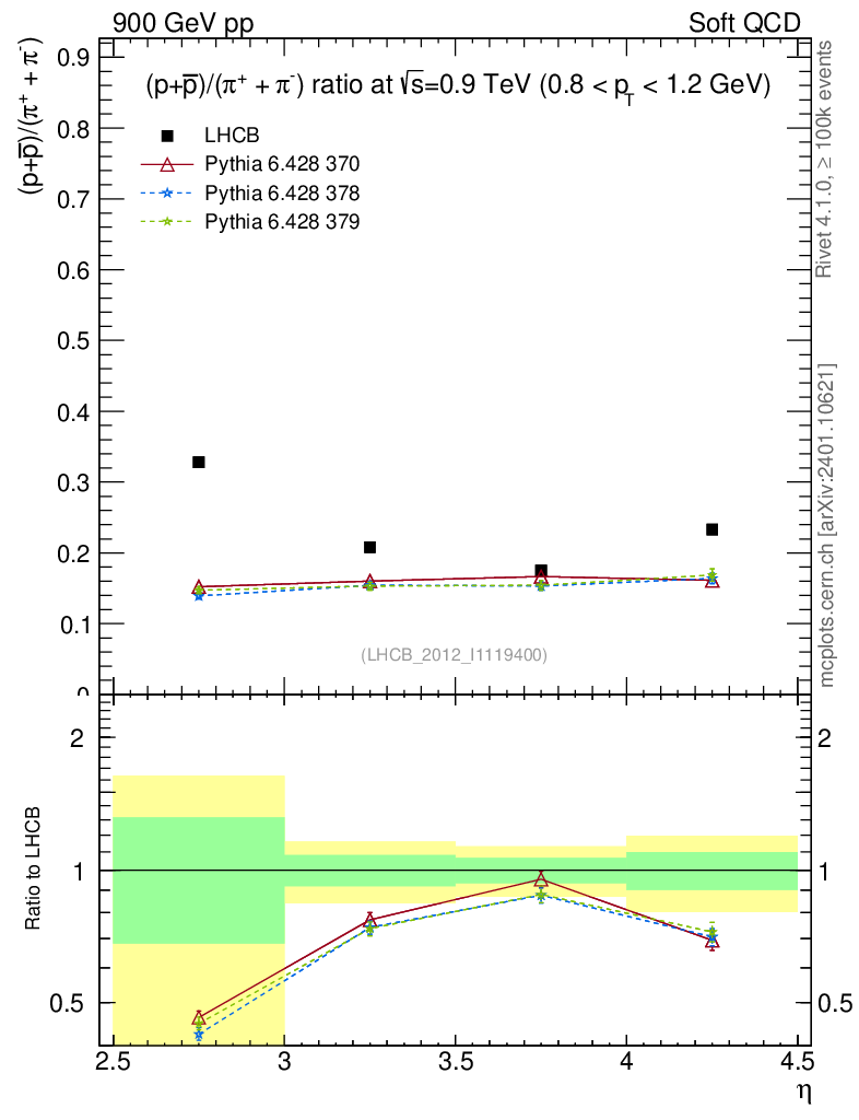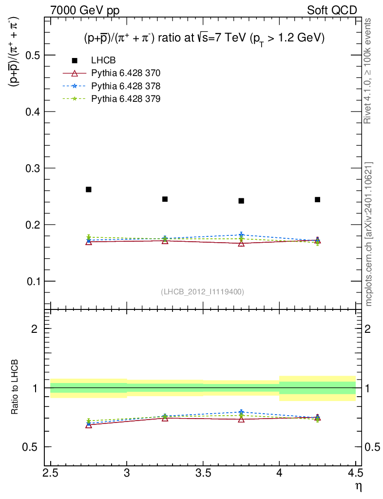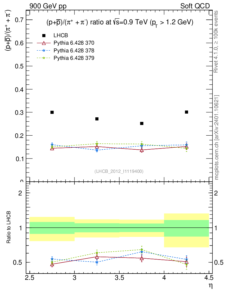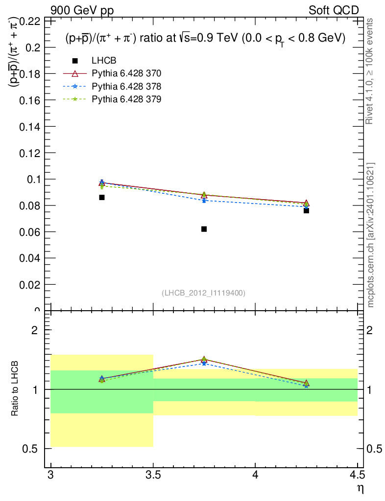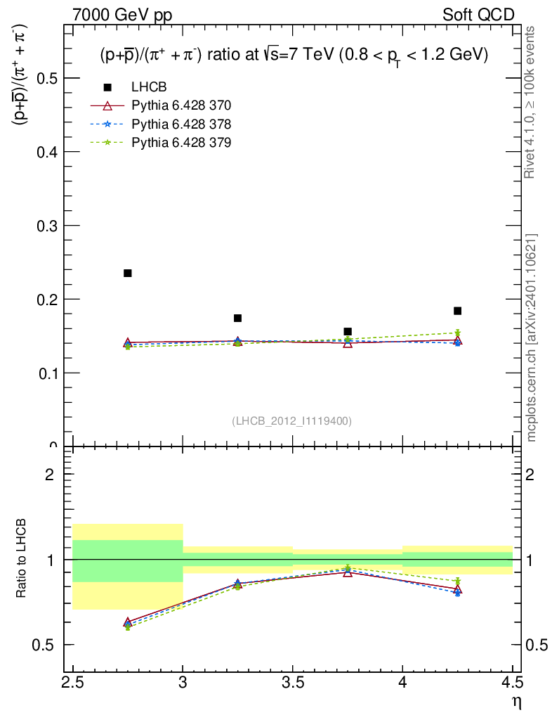 Soft QCD (inelastic) : Identified Particles : Ratios : (pbar+p)/(π-+π+) vs |y|