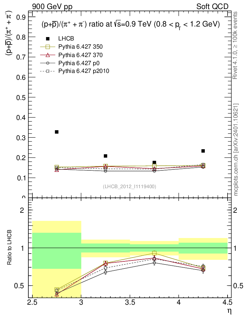 Soft QCD (inelastic) : Identified Particles : Ratios : (pbar+p)/(π-+π+) vs |y|