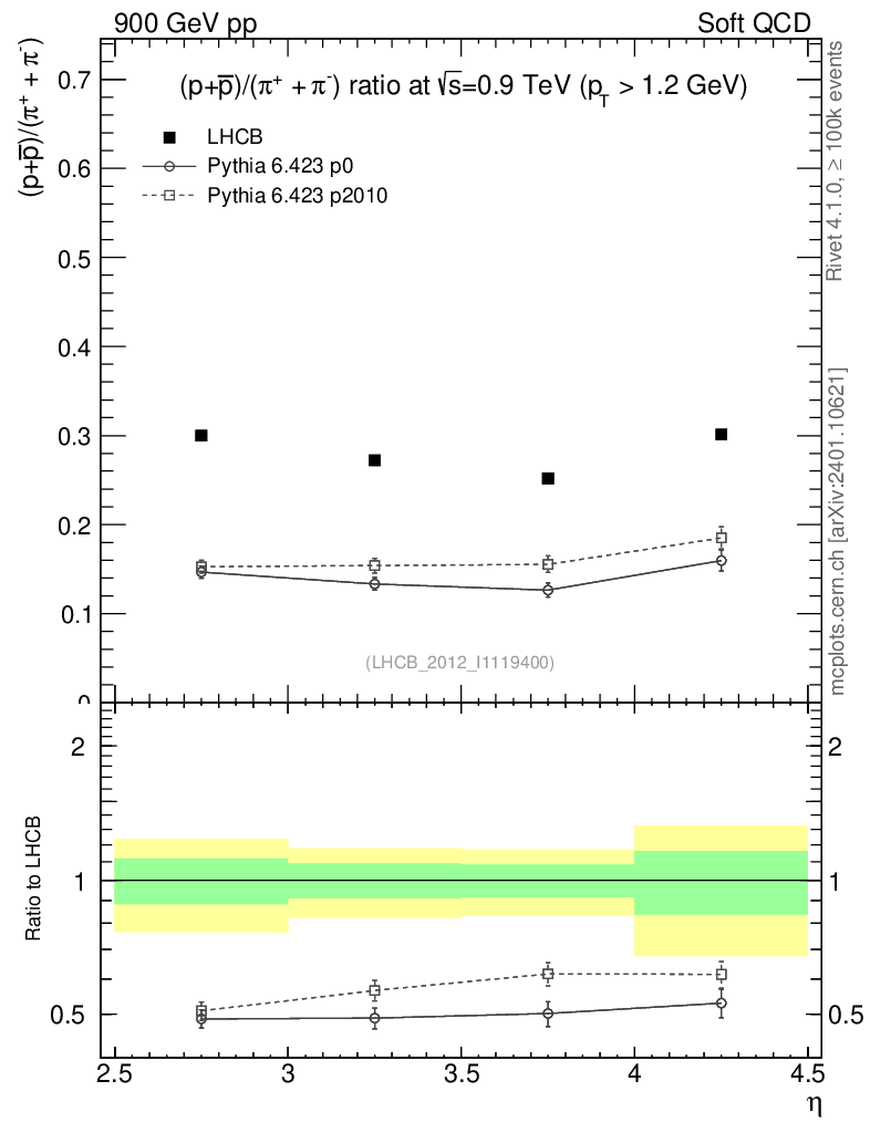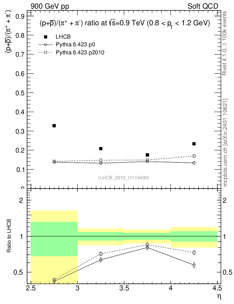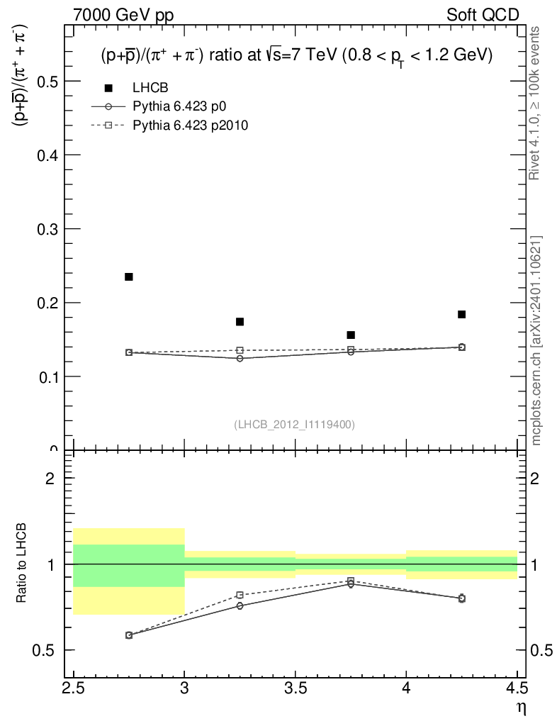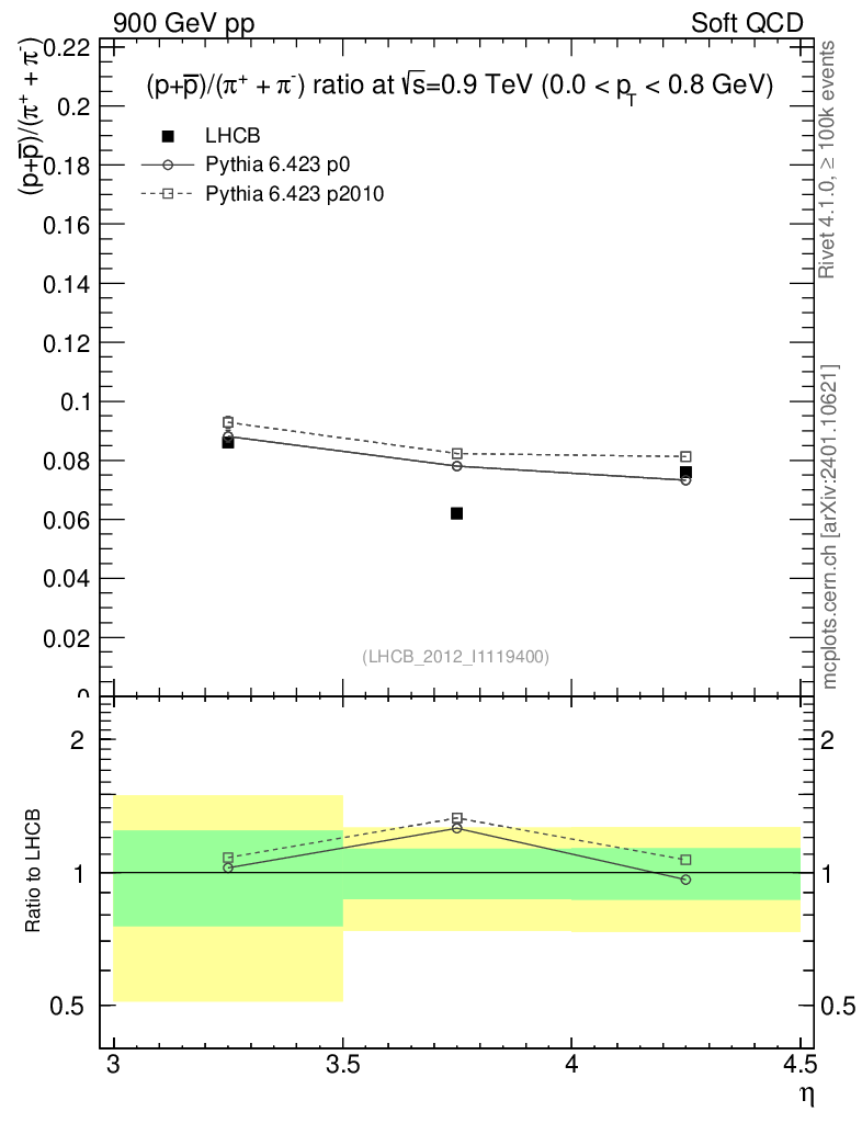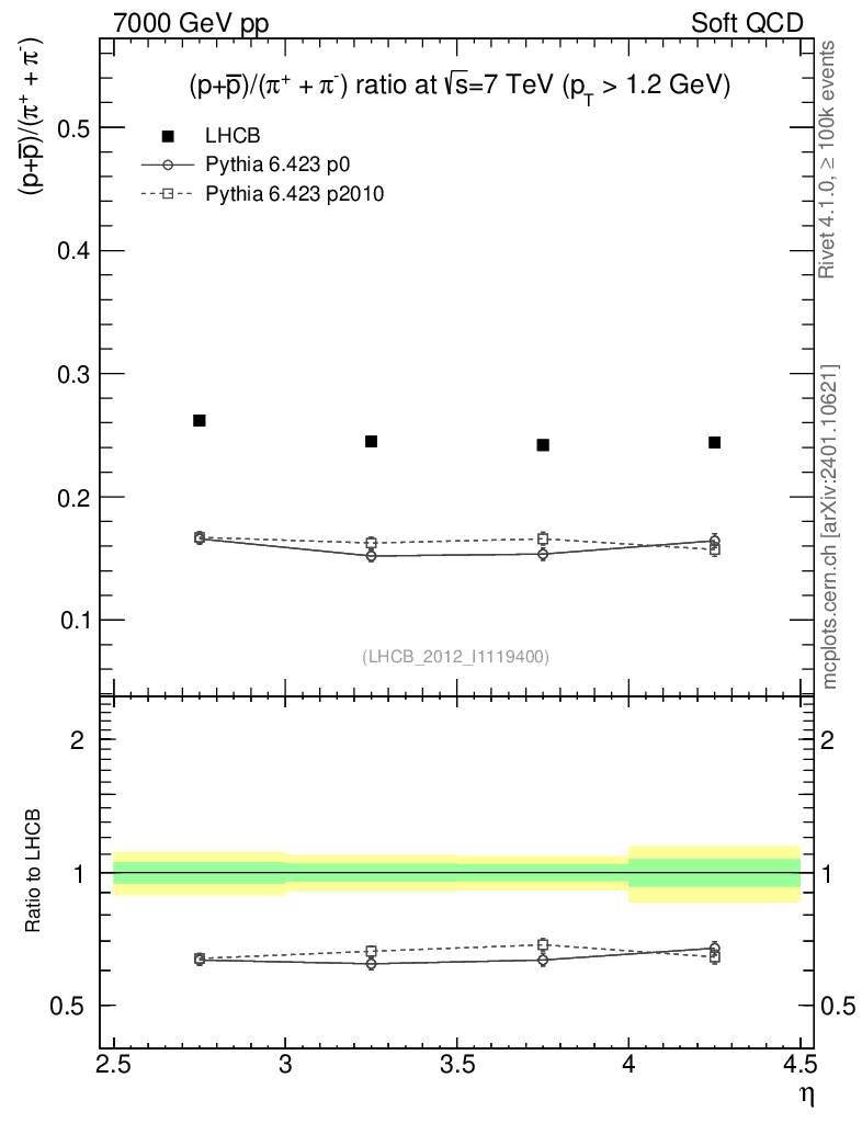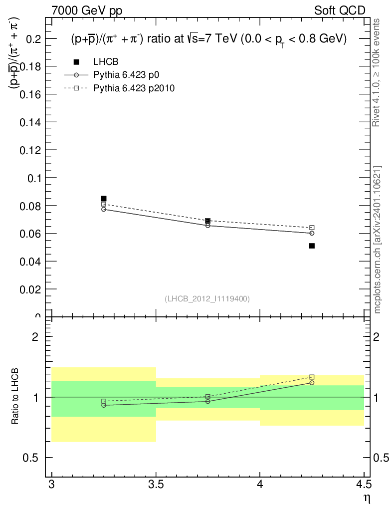 Soft QCD (inelastic) : Identified Particles : Ratios : (pbar+p)/(π-+π+) vs |y|