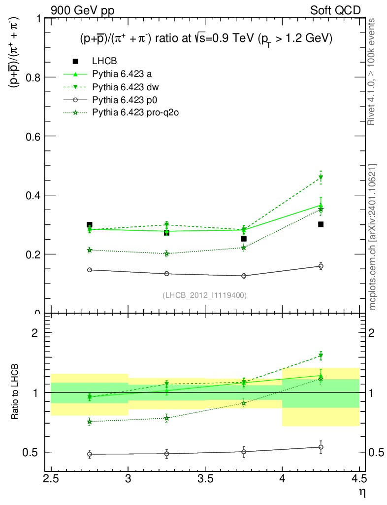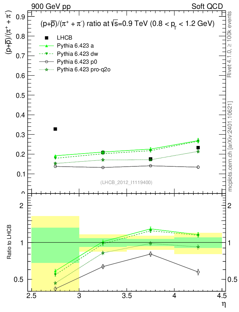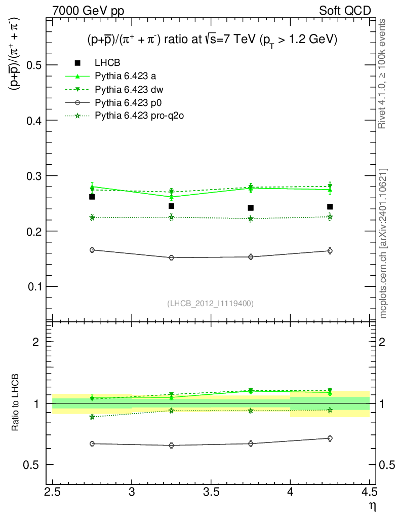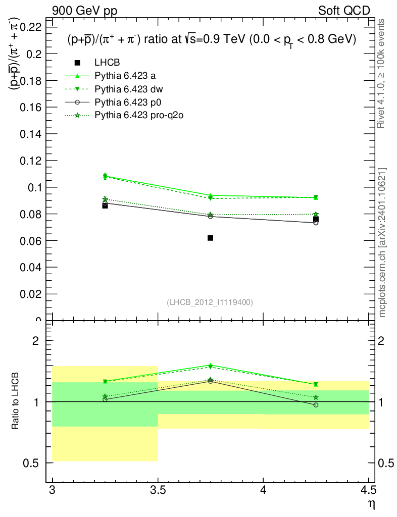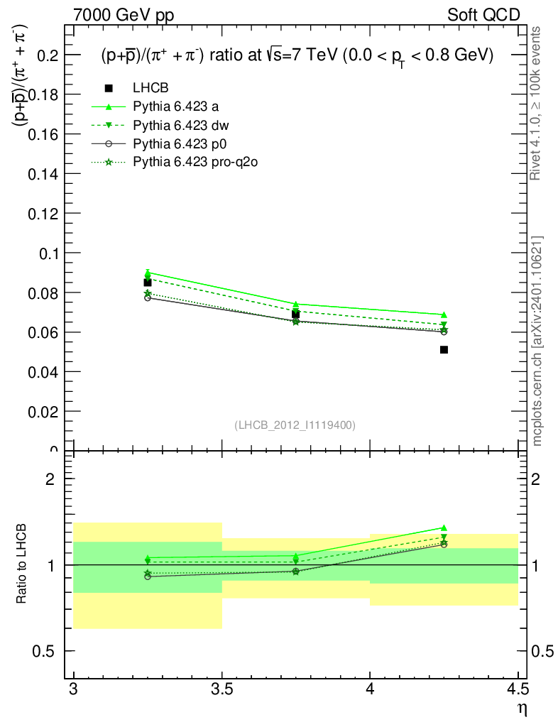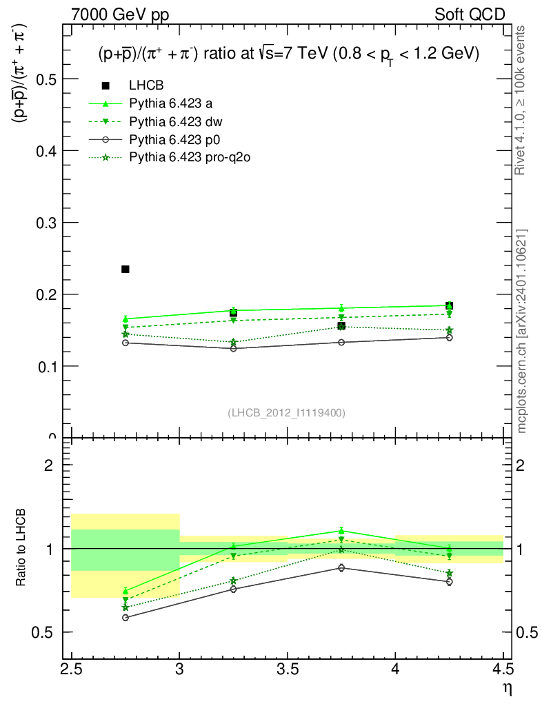 Soft QCD (inelastic) : Identified Particles : Ratios : (pbar+p)/(π-+π+) vs |y|