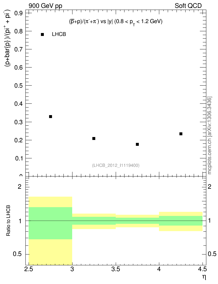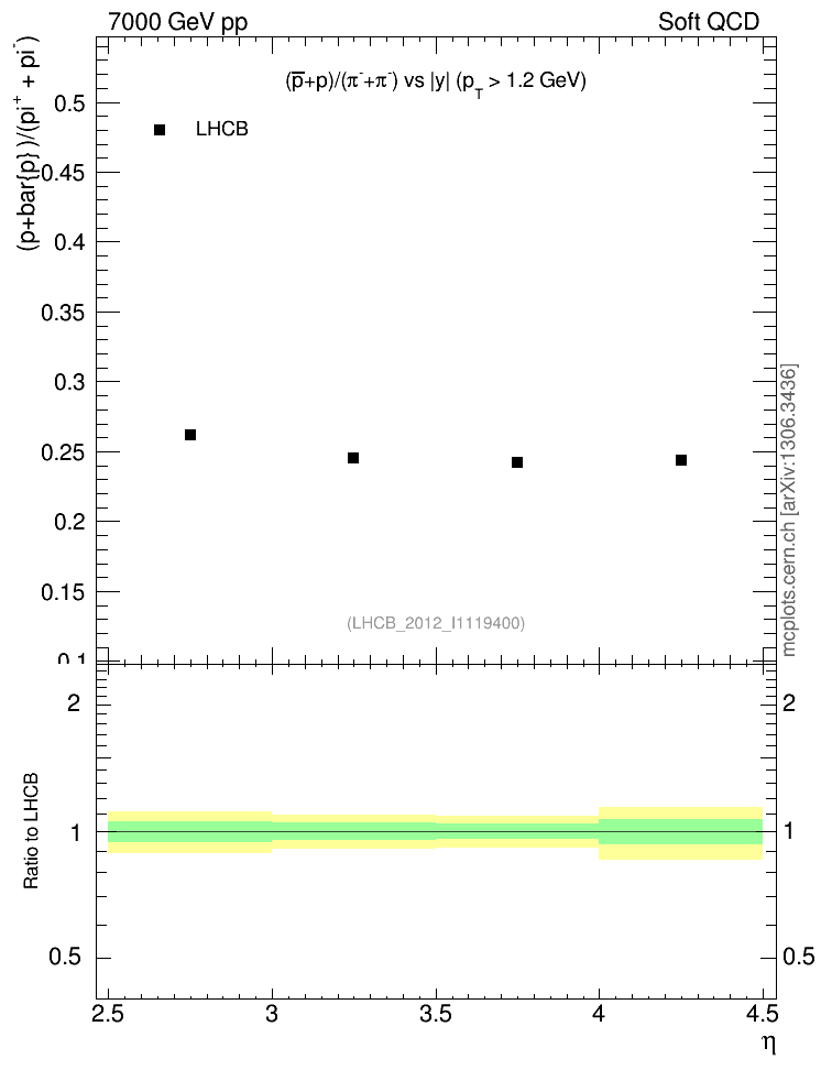 Soft QCD (inelastic) : Identified Particles : Ratios : (pbar+p)/(π-+π+) vs |y|