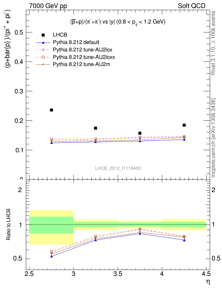 (pbar+p)/(π-+π+) vs |y|