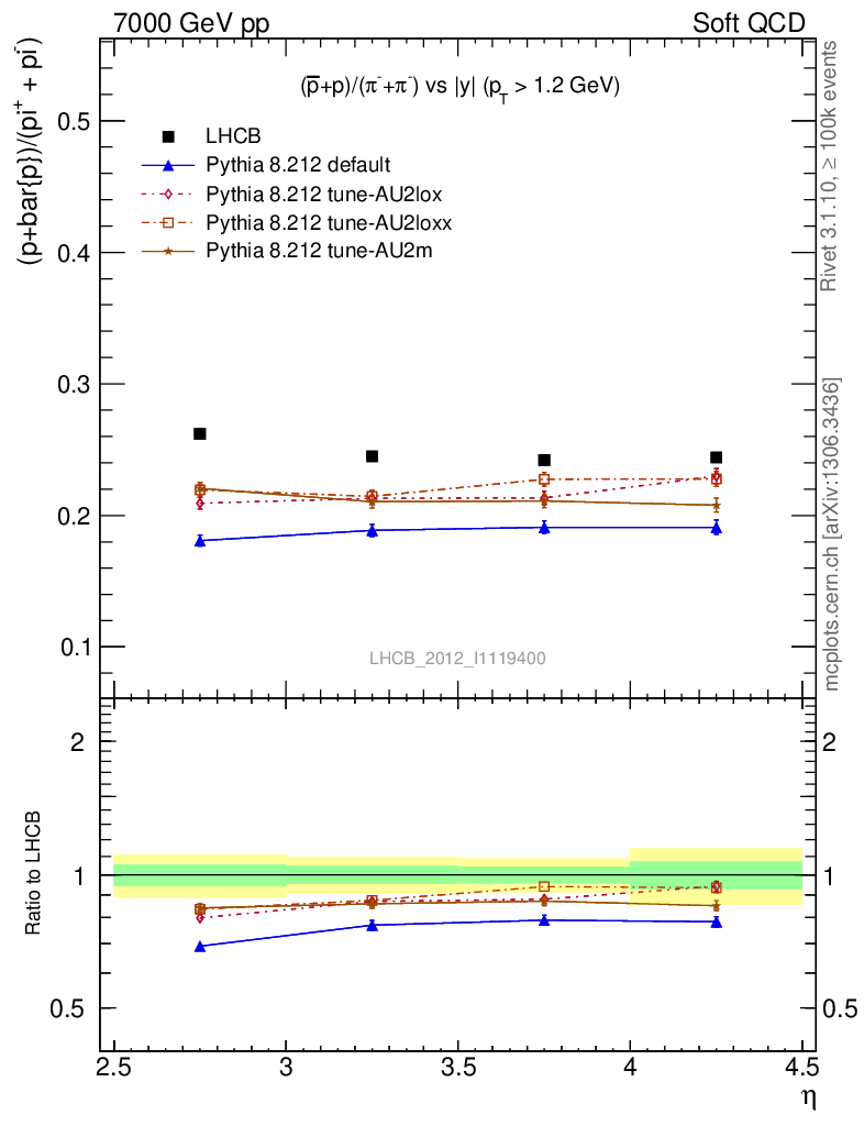 Soft QCD (inelastic) : Identified Particles : Ratios : (pbar+p)/(π-+π+) vs |y|