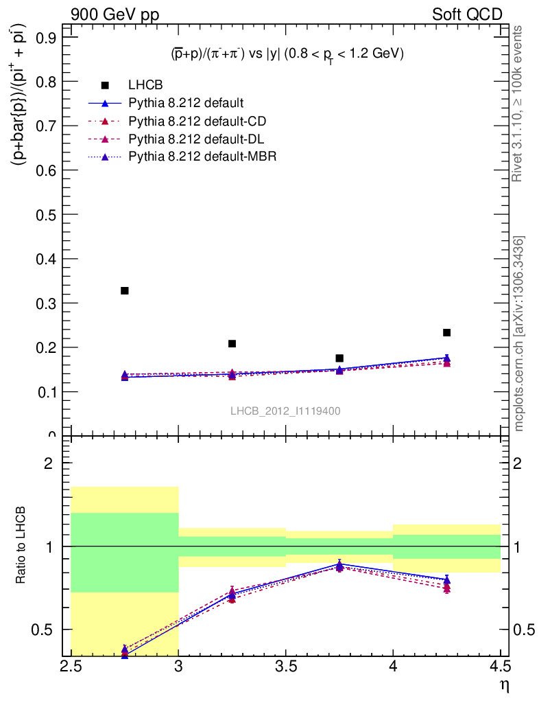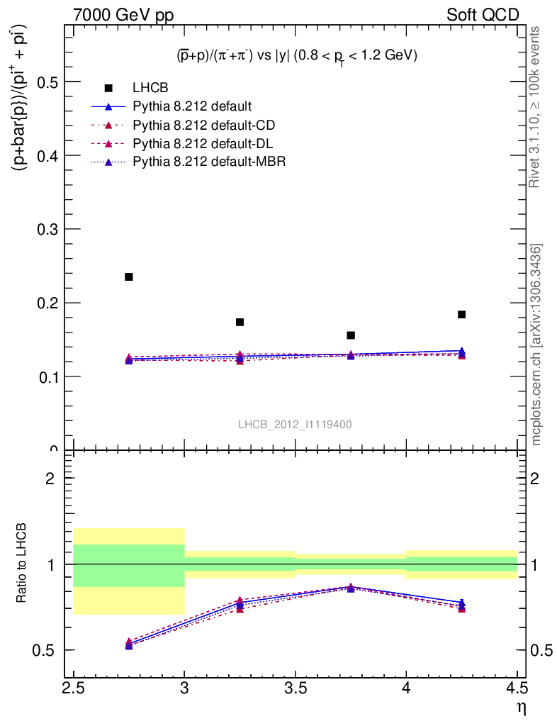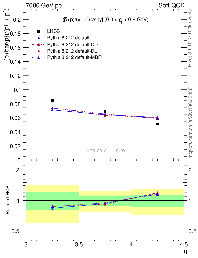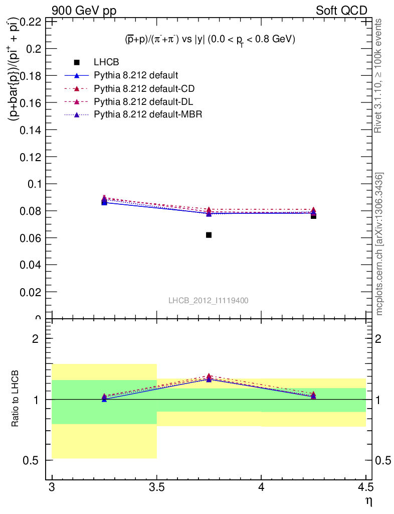 Soft QCD (inelastic) : Identified Particles : Ratios : (pbar+p)/(π-+π+) vs |y|