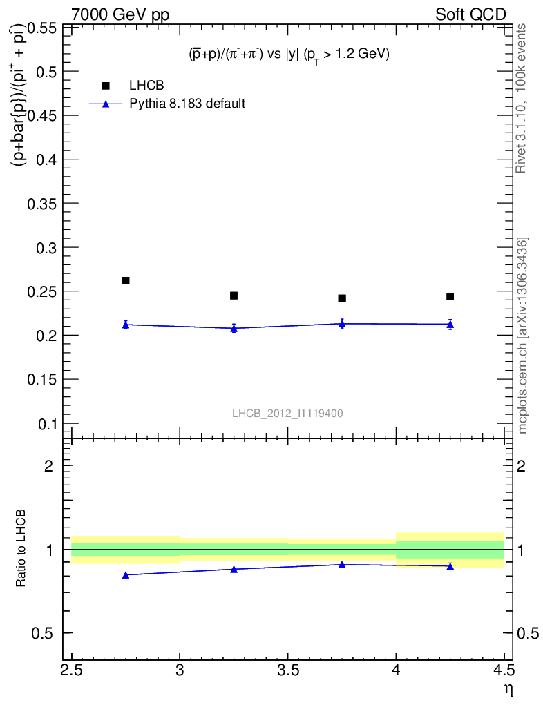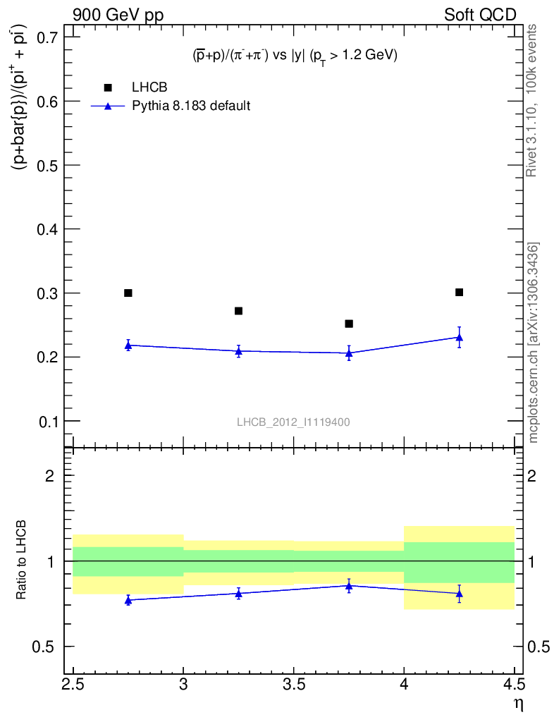 Soft QCD (inelastic) : Identified Particles : Ratios : (pbar+p)/(π-+π+) vs |y|