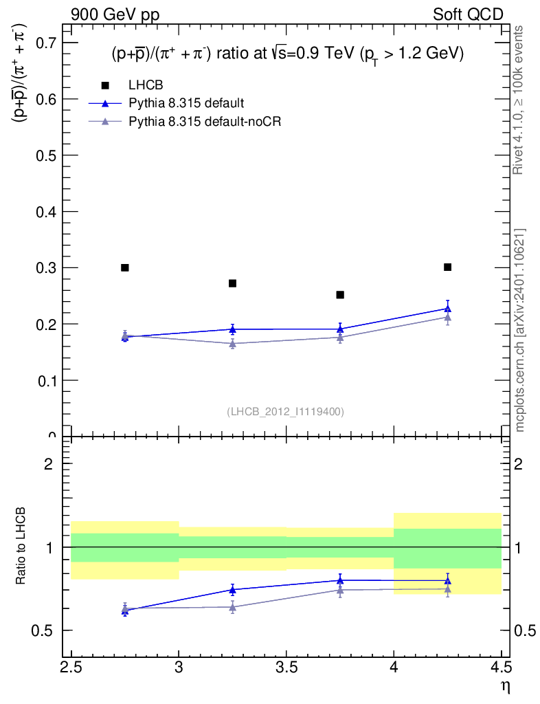 Soft QCD (inelastic) : Identified Particles : Ratios : (pbar+p)/(π-+π+) vs |y|