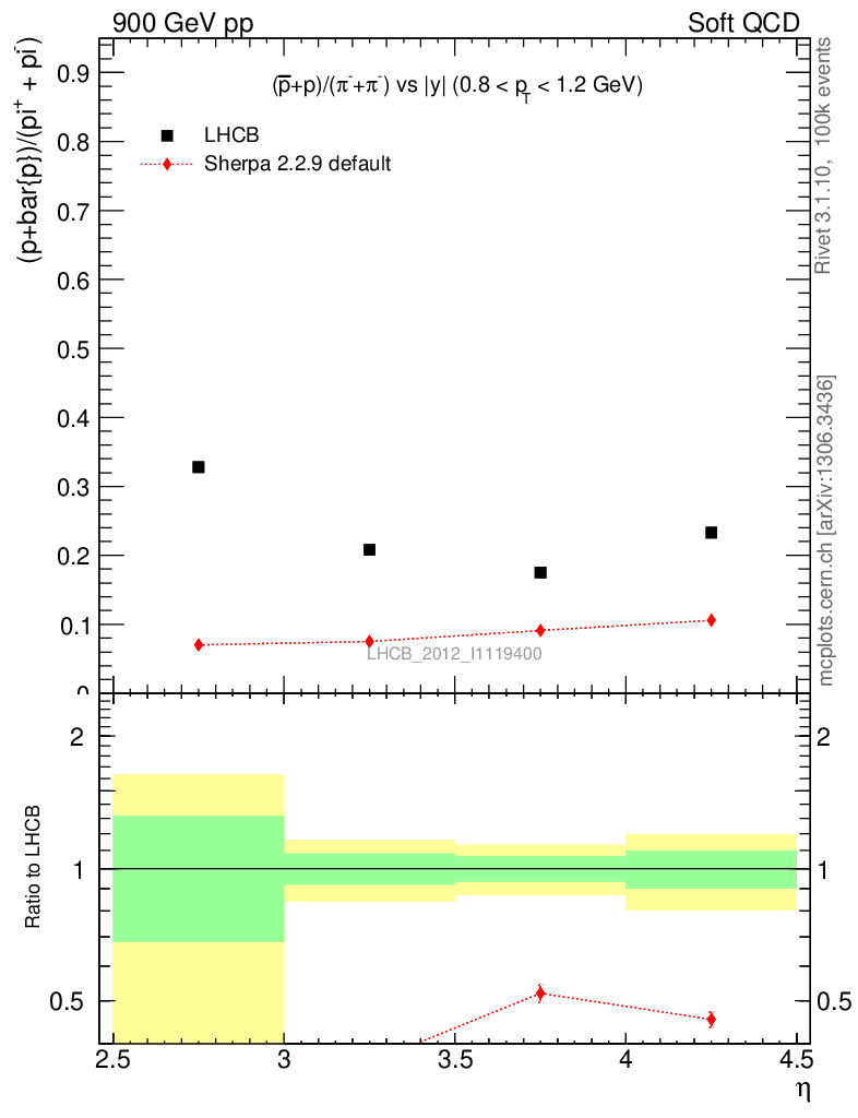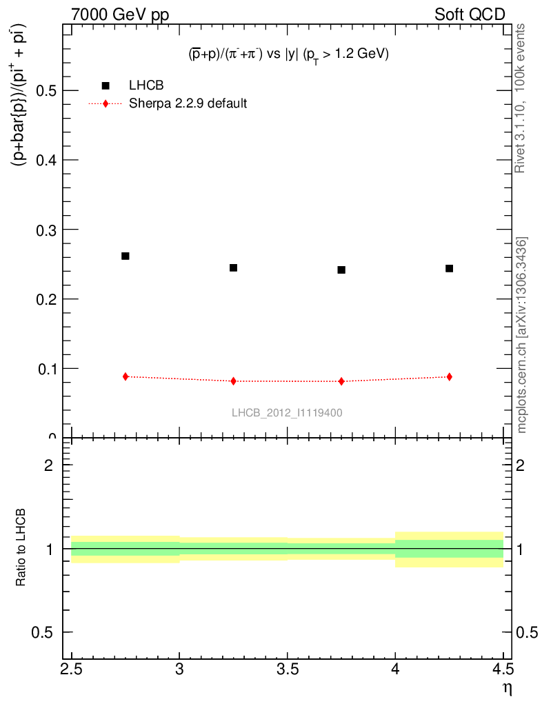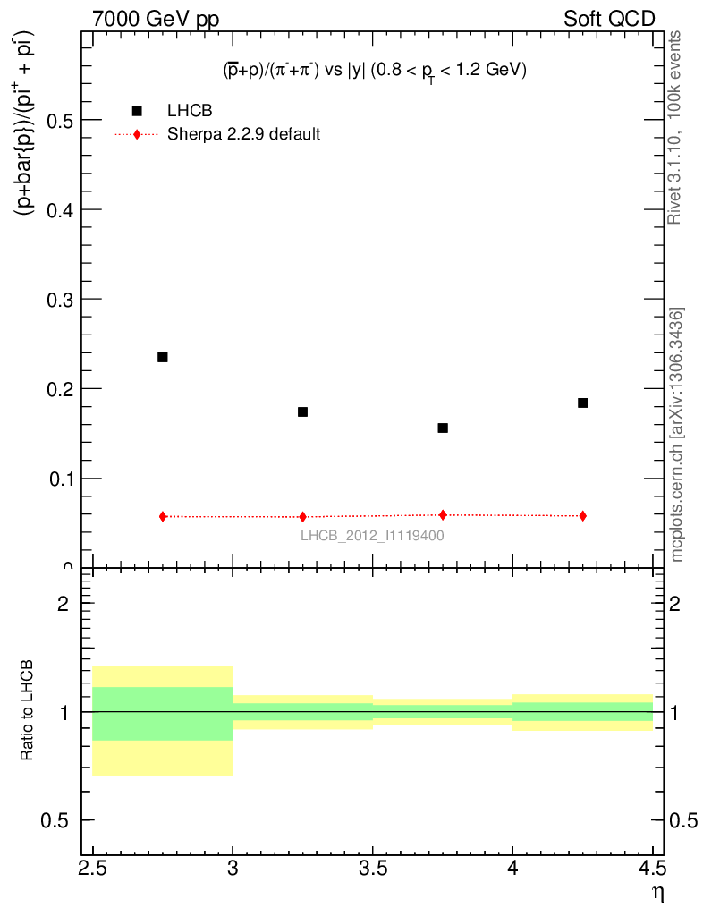 Soft QCD (inelastic) : Identified Particles : Ratios : (pbar+p)/(π-+π+) vs |y|