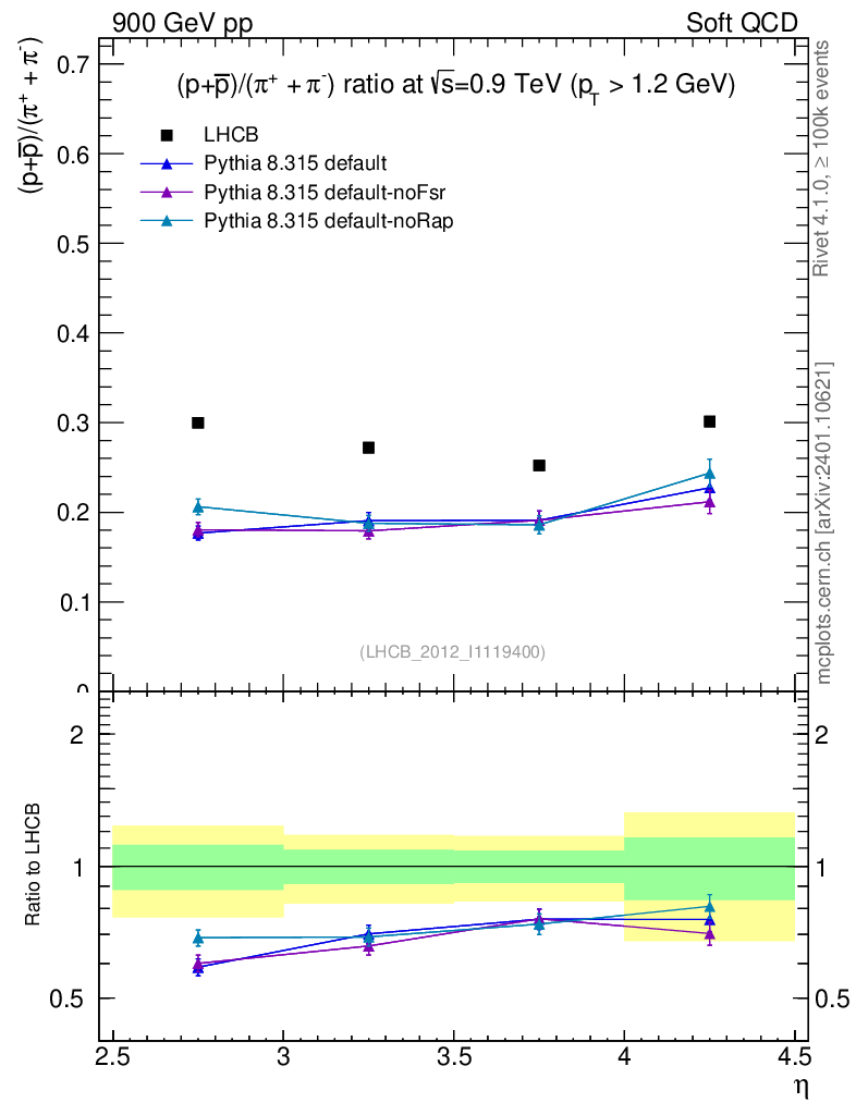 Soft QCD (inelastic) : Identified Particles : Ratios : (pbar+p)/(π-+π+) vs |y|