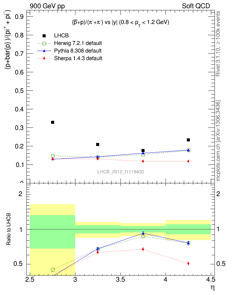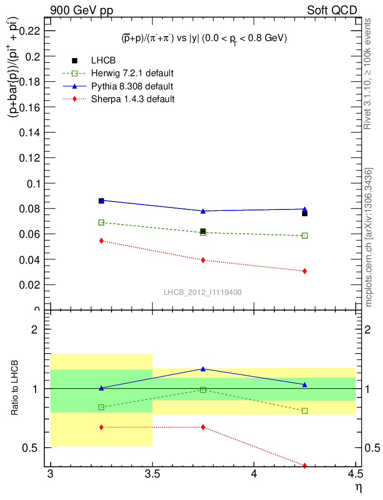 Soft QCD (inelastic) : Identified Particles : Ratios : (pbar+p)/(π-+π+) vs |y|