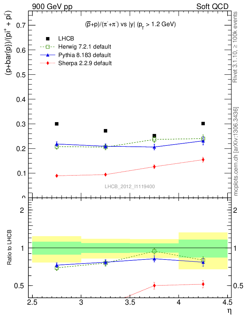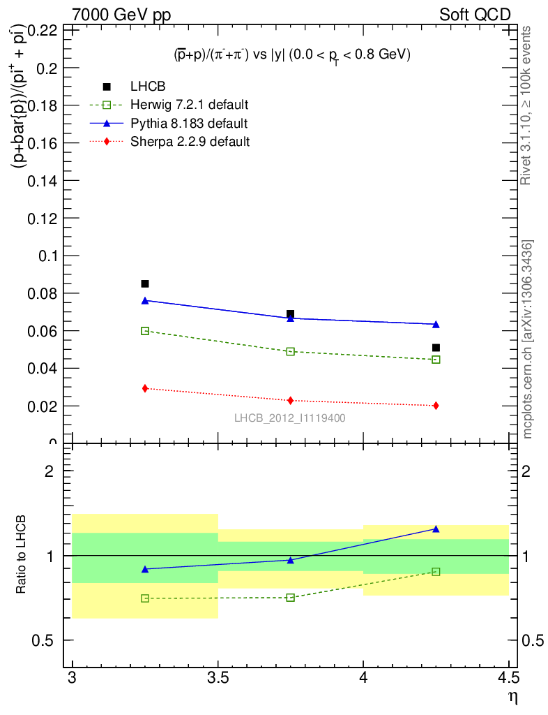 Soft QCD (inelastic) : Identified Particles : Ratios : (pbar+p)/(π-+π+) vs |y|