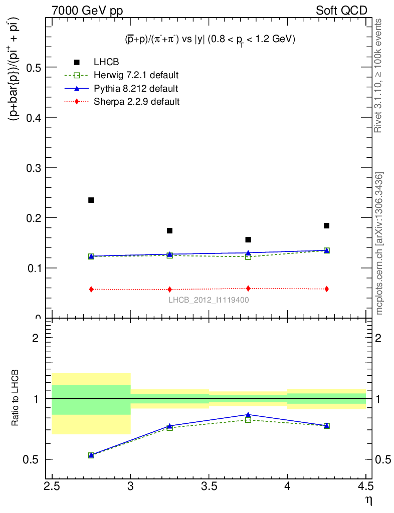 Soft QCD (inelastic) : Identified Particles : Ratios : (pbar+p)/(π-+π+) vs |y|