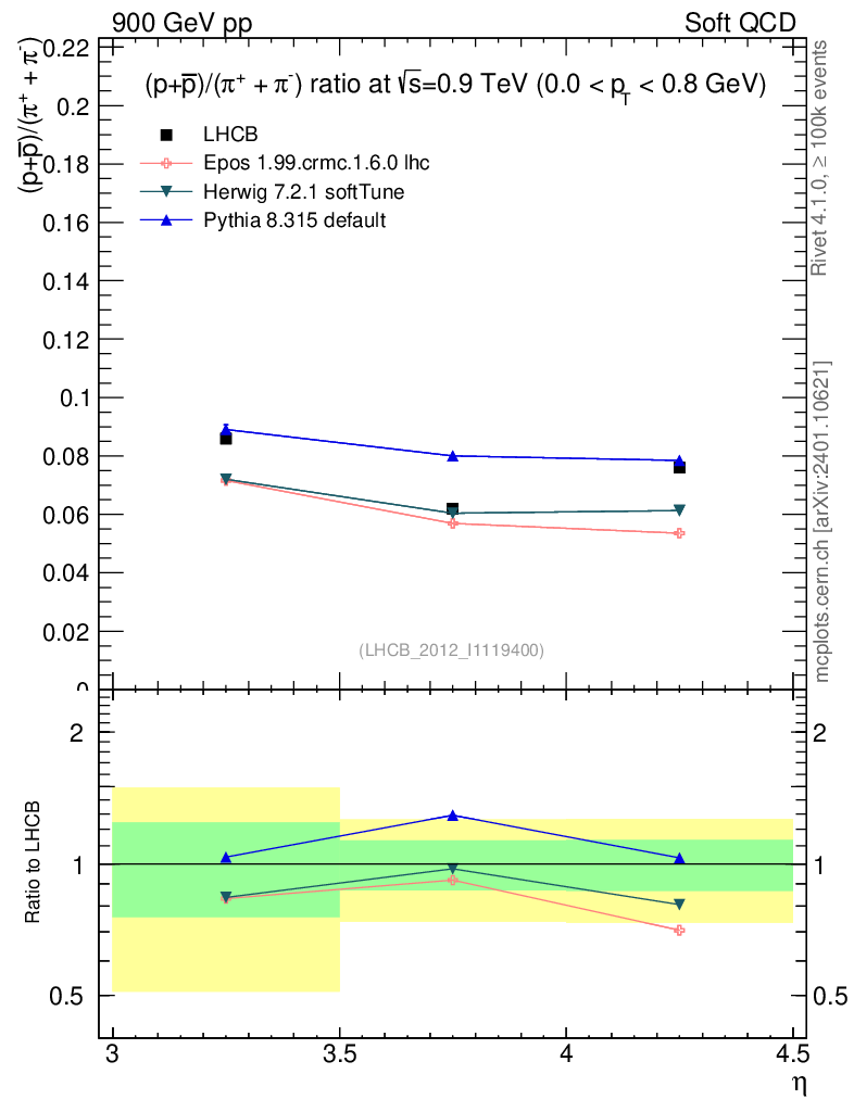 Soft QCD (inelastic) : Identified Particles : Ratios : (pbar+p)/(π-+π+) vs |y|