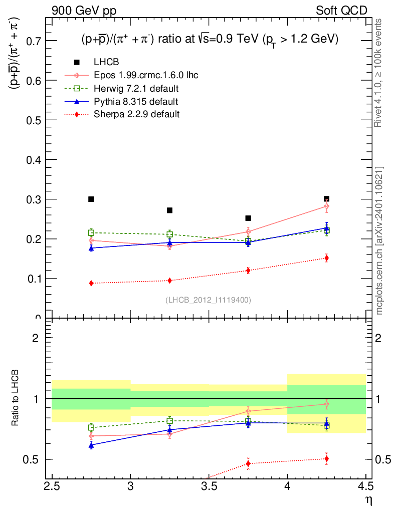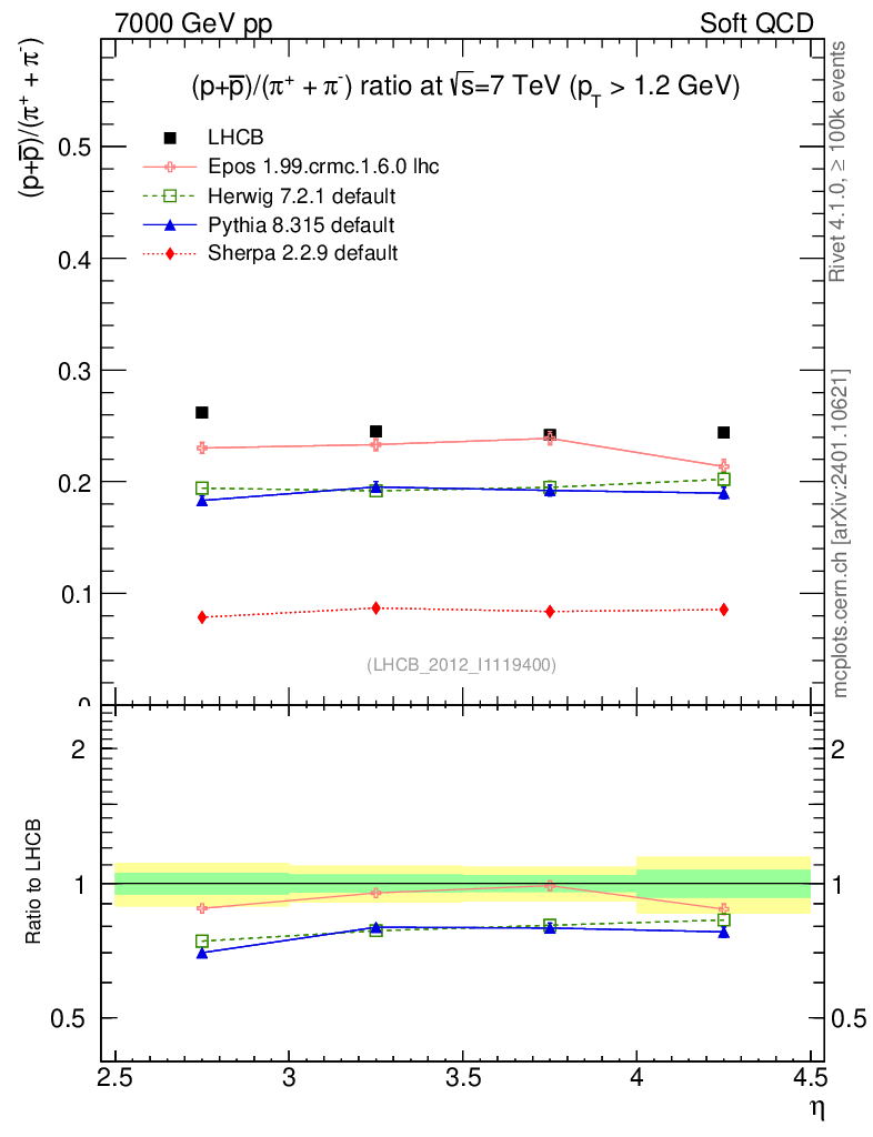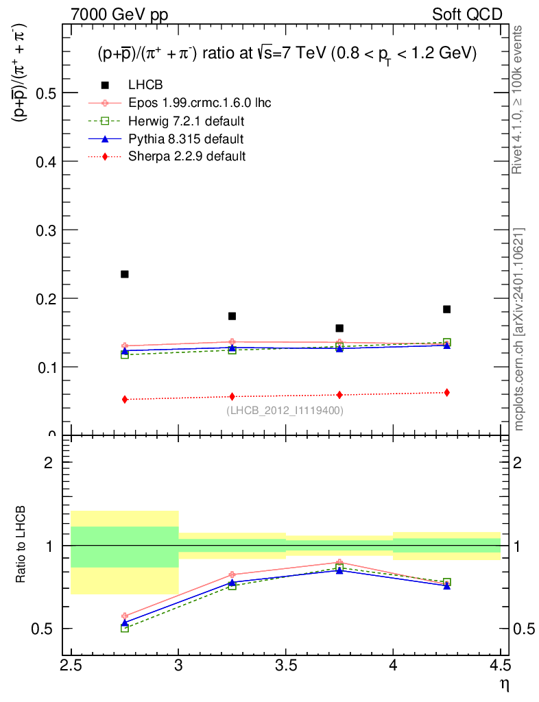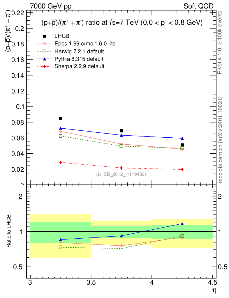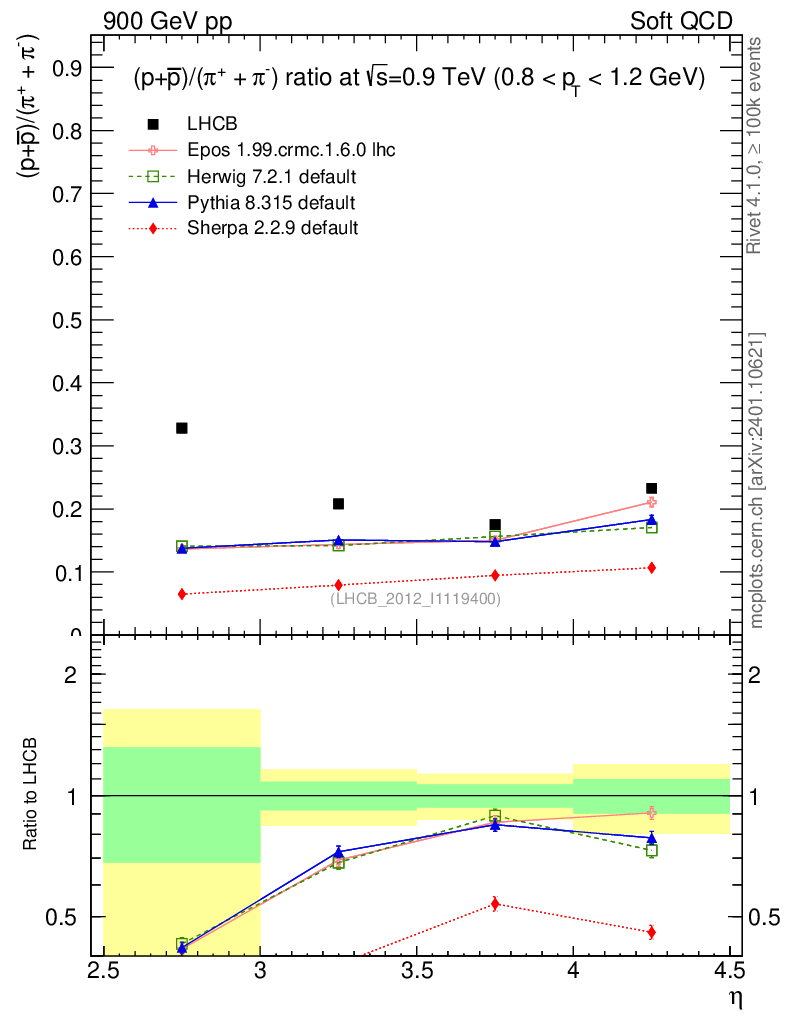 Soft QCD (inelastic) : Identified Particles : Ratios : (pbar+p)/(π-+π+) vs |y|