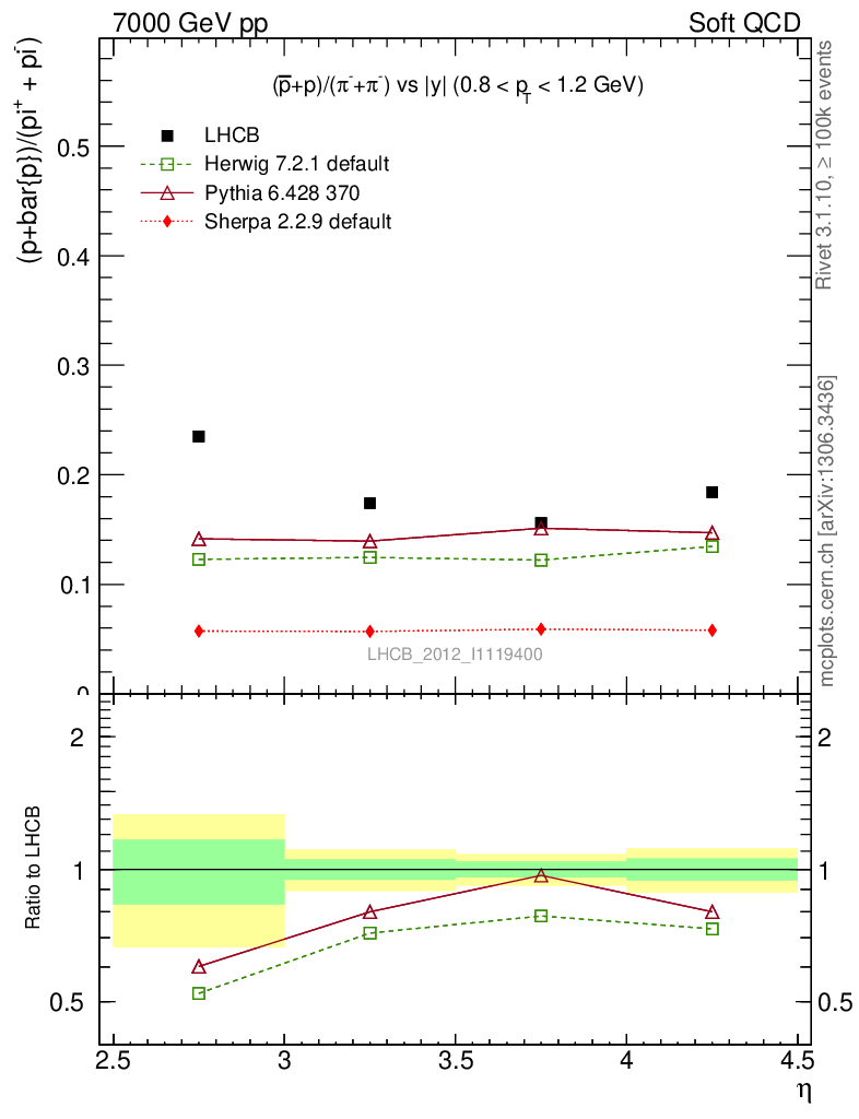 Soft QCD (inelastic) : Identified Particles : Ratios : (pbar+p)/(π-+π+) vs |y|