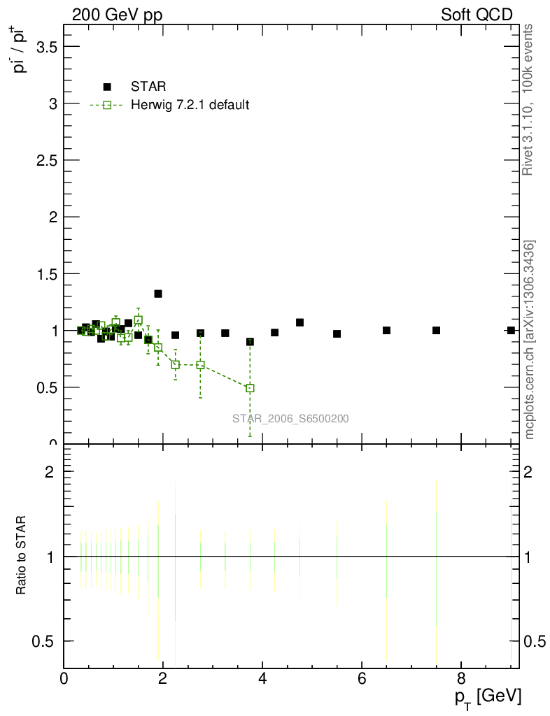 Soft QCD (inelastic) : Identified Particles : Ratios : π-/π+ vs pT