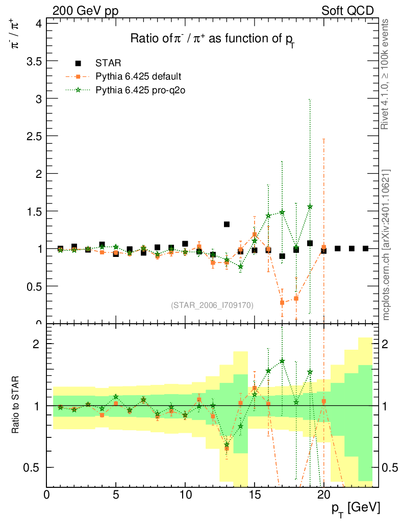 Soft QCD (inelastic) : Identified Particles : Ratios : π-/π+ vs pT