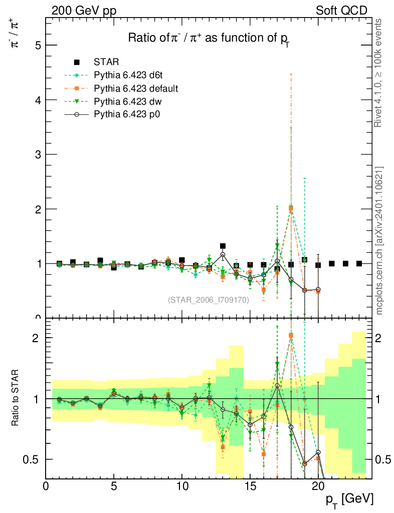 Soft QCD (inelastic) : Identified Particles : Ratios : π-/π+ vs pT