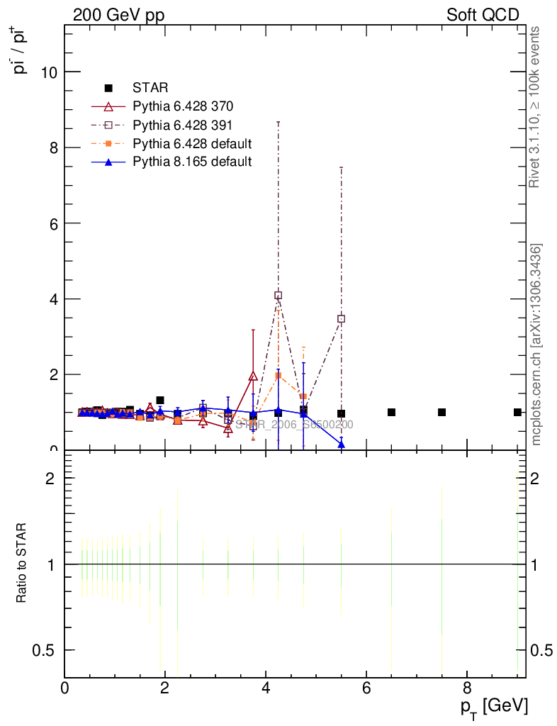 Soft QCD (inelastic) : Identified Particles : Ratios : π-/π+ vs pT