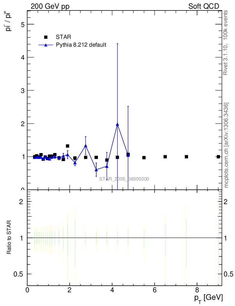 Soft QCD (inelastic) : Identified Particles : Ratios : π-/π+ vs pT