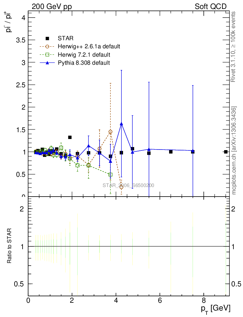 Soft QCD (inelastic) : Identified Particles : Ratios : π-/π+ vs pT