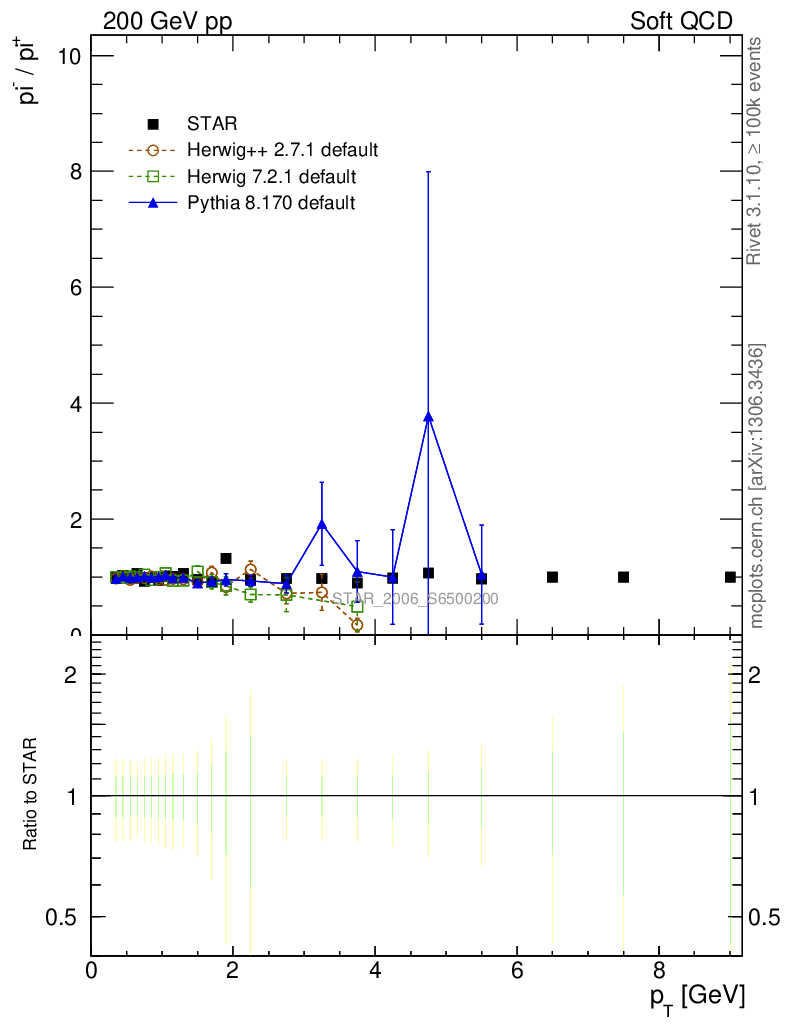 Soft QCD (inelastic) : Identified Particles : Ratios : π-/π+ vs pT