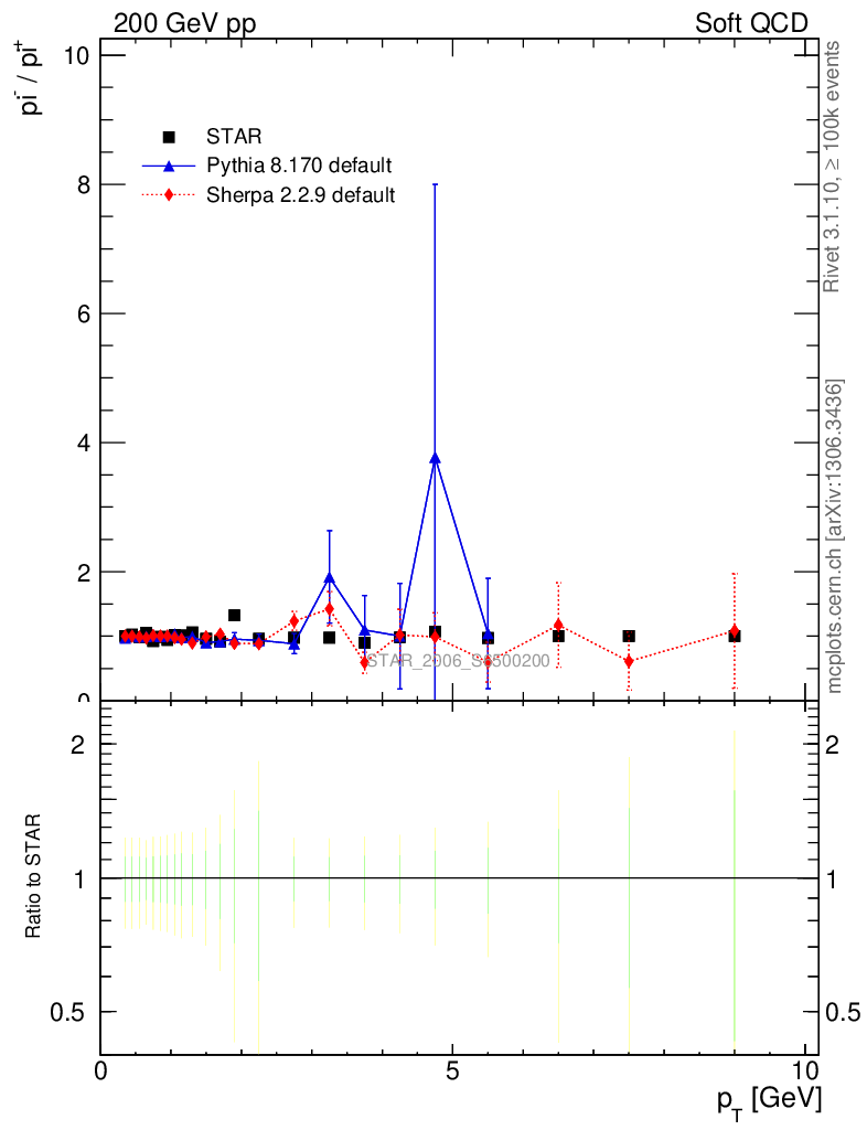 Soft QCD (inelastic) : Identified Particles : Ratios : π-/π+ vs pT