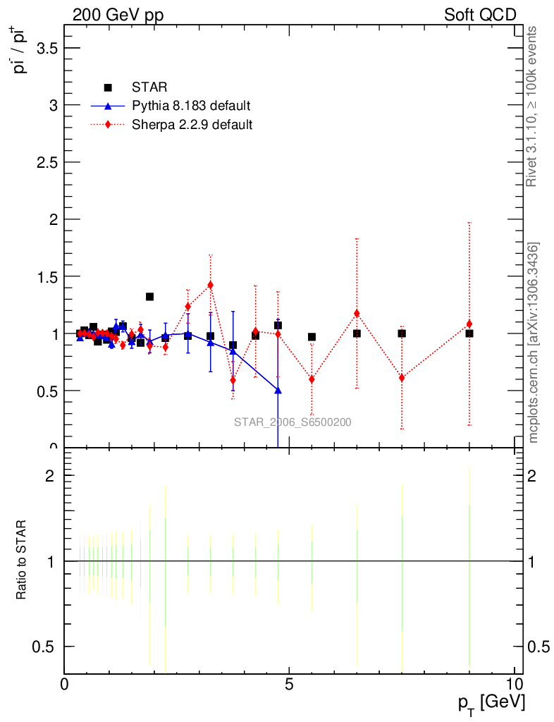 Soft QCD (inelastic) : Identified Particles : Ratios : π-/π+ vs pT