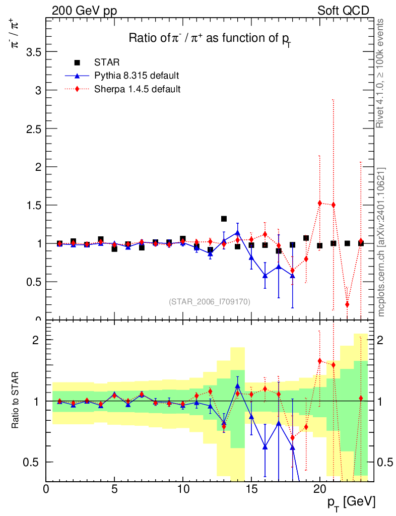 Soft QCD (inelastic) : Identified Particles : Ratios : π-/π+ vs pT