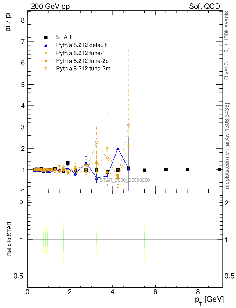 Soft QCD (inelastic) : Identified Particles : Ratios : π-/π+ vs pT