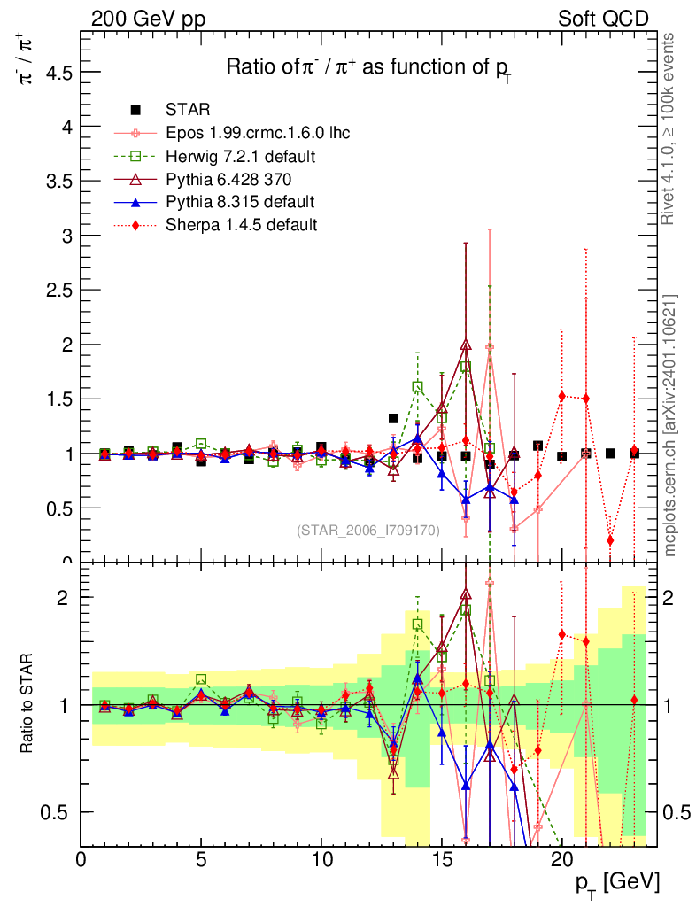 Soft QCD (inelastic) : Identified Particles : Ratios : π-/π+ vs pT