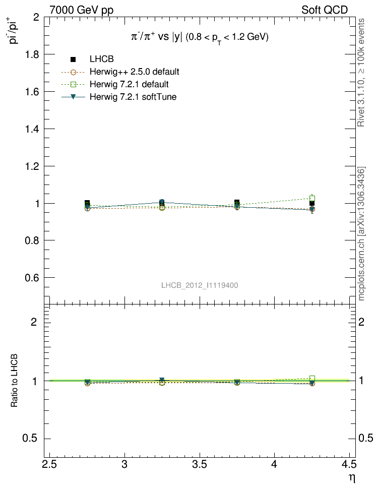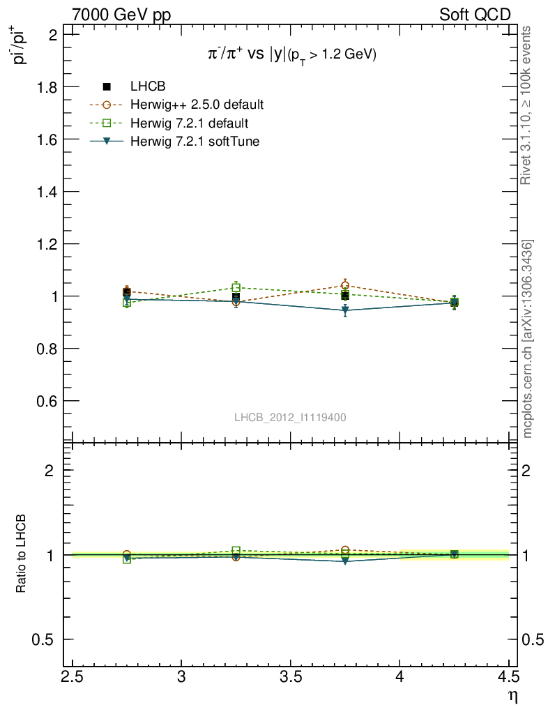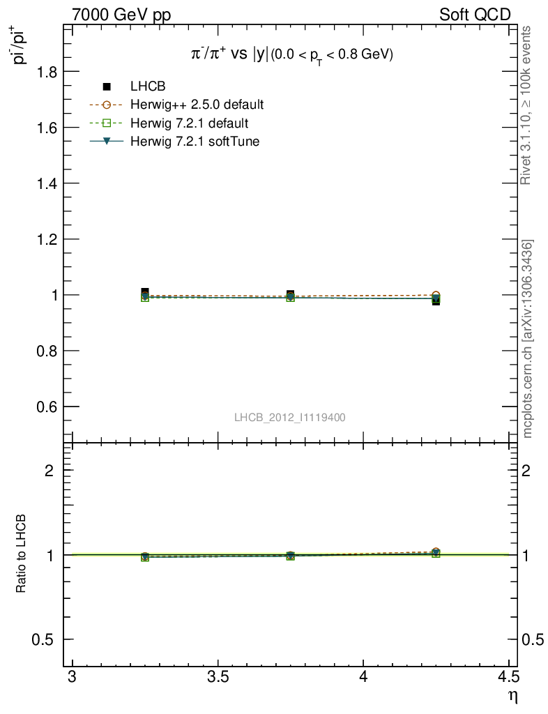 Soft QCD (inelastic) : Identified Particles : Ratios : π-/π+ vs |y|