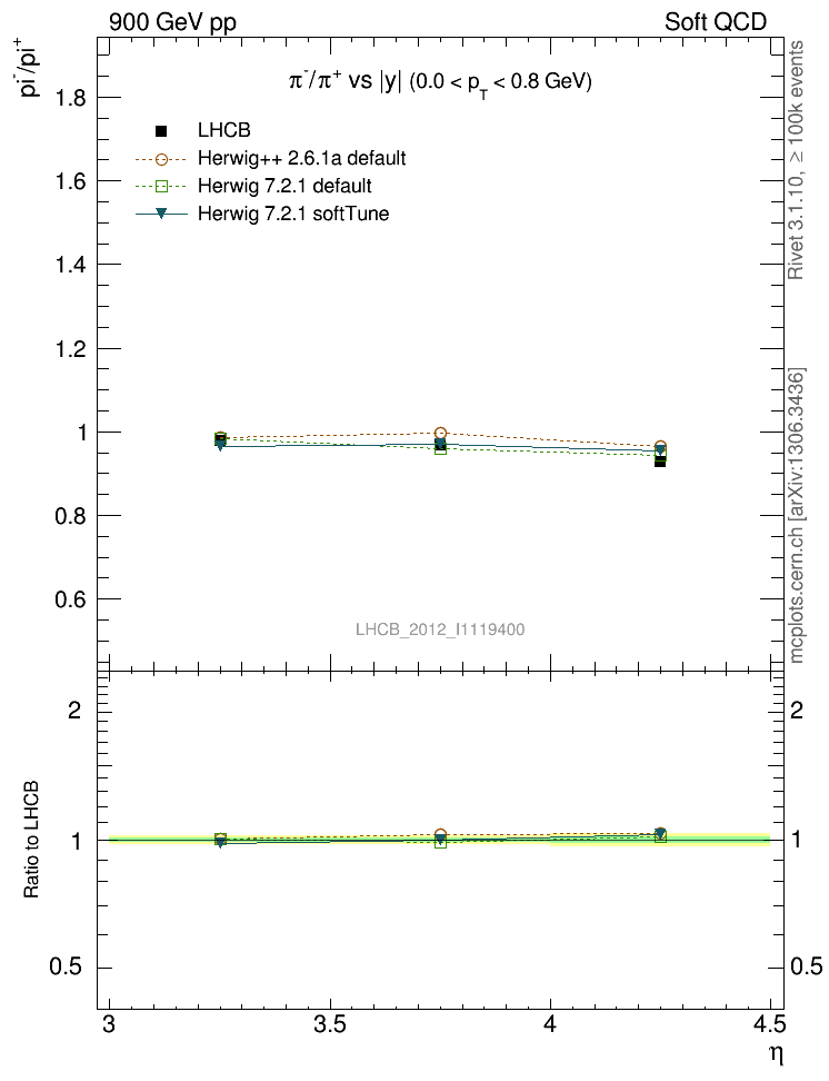 Soft QCD (inelastic) : Identified Particles : Ratios : π-/π+ vs |y|